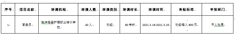 依据《关于调整职业技能提升行动培训补贴标准的通知》(吉人社联[2020]59号)、《梅河口市人民政府办公室关于印发梅河口市职业技能提升行动实施方案(2019-2021年)的通知》(梅政办[2019]34号)等文件精神,为搭建信息平台,提高培训质量,确保完成培训任务,现将2021年我市政府补贴性职业培训项目予以公告。