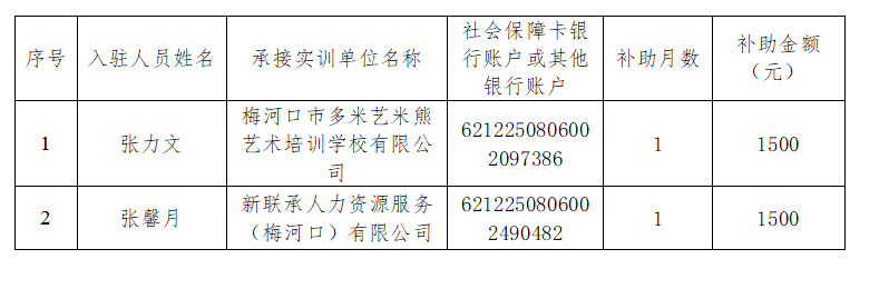 根据吉林省人力资源和社会保障厅、吉林省教育厅、吉林省财政厅关于印发《吉林省高校毕业生就业生活补贴实施细则(暂行)》等6项实施细则的通知(吉人社联〔2024〕78号)文件规定,我局对高校毕业生实训补助申请人员的材料进行审核、数据比对,拟对下列申请人员(详见附件列表)拨付补助,现予公示。
