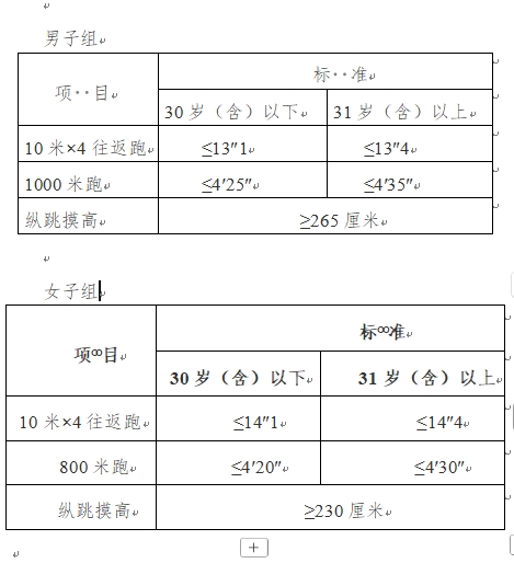 年龄计算时间截止到参加体能测评当月,即1994年8月(含)以前出生的考生体能测评标准按照31岁(含)以上的标准执行;1994年9月(含)以后出生的考生体能测评按照30岁(含)以下的标准执行。