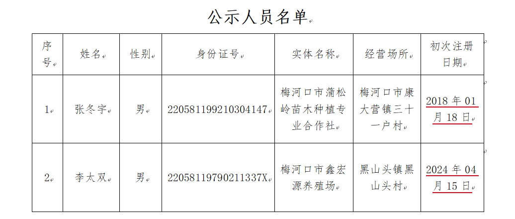 根据《关于做好初次创业补贴申请发放工作的通知》(吉人社联〔2020〕20号)文件要求,经本人申请,梅河口市就业服务局审核,拟认定下列人员符合申请条件,现公示如下。