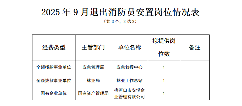 关于国家综合性消防救援队伍2025年9月退出消防员安置岗位的公示