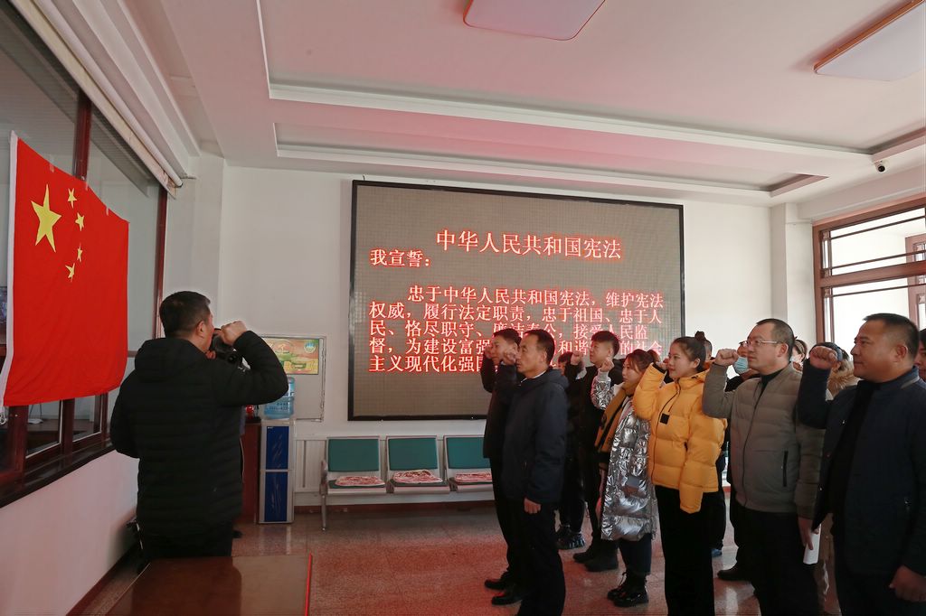 12月4日,自然资源局40余名机关、事业单位干部职工举行了维护宪法宣誓仪式,他们面向国旗进行了庄严宣誓。