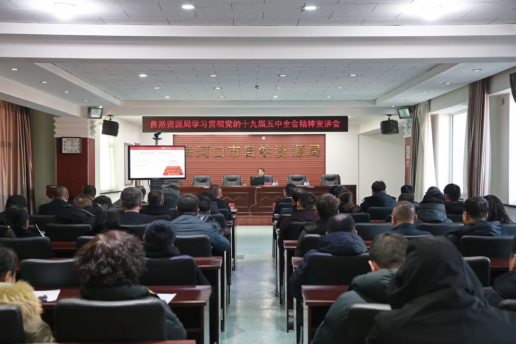 近日,市自然资源局召开学习贯彻党的十九届五中全会精神宣讲会,本次会议旨在深入学习贯彻党的十九届五中全会精神,主动担当作为,把握机遇,开拓创新,锐意进取,为自然资源事业高质量发展聚能增效。局领导班子成员、事业单位负责人及机关科室全体人员参加了会议,副局长管岩春主持会议。