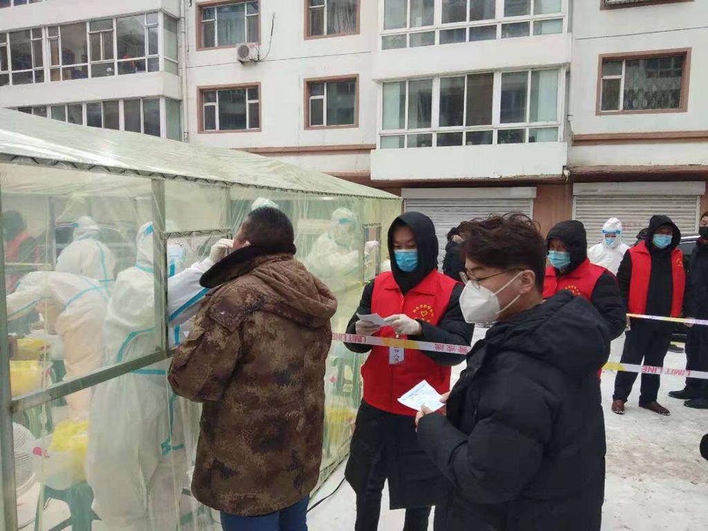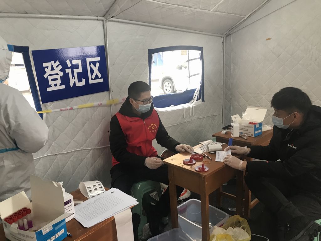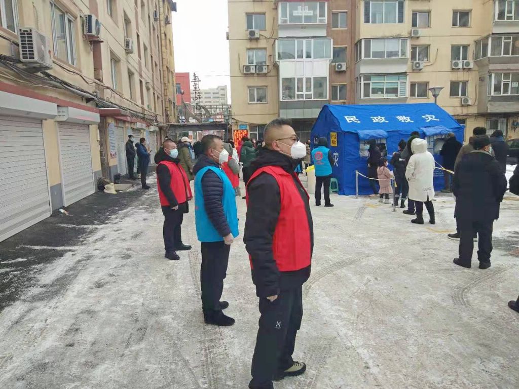 1月21日,出动72名干部,配合建国社区3个点位开展核酸检测工作。