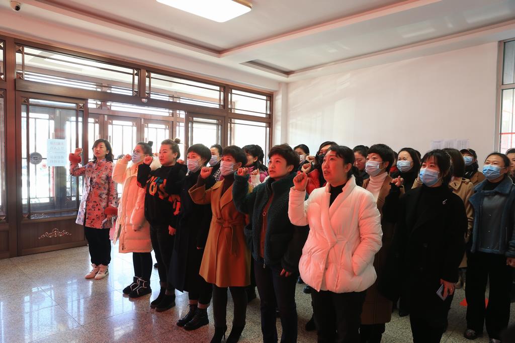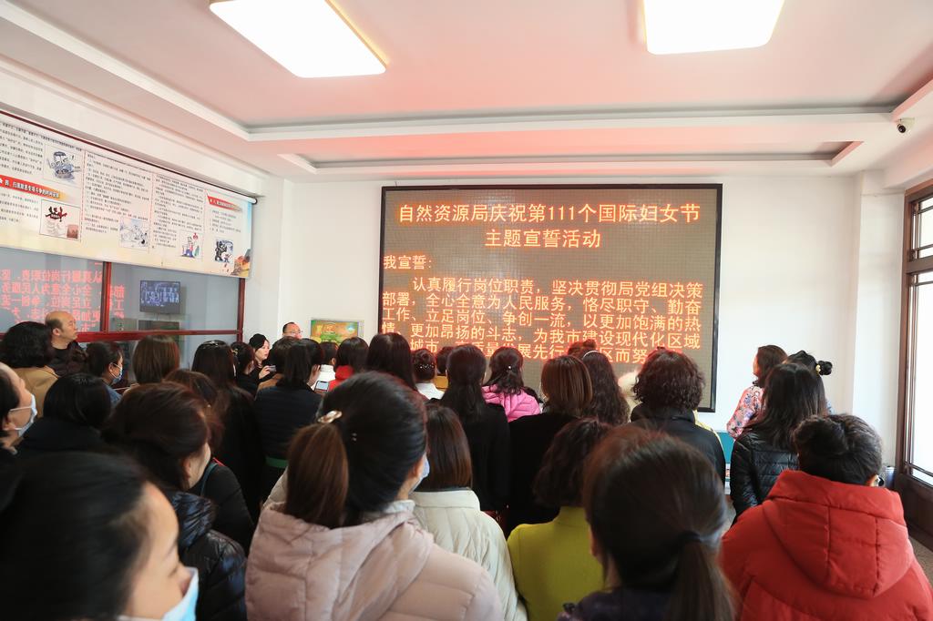 3月8日上午,局楼内机关全体女同志在一楼隆重集会,开展宣誓活动,她们纷纷表示,要立足岗位,争创一流,努力为自然资源事业发展和建设高质量发展先行示范区、现代化区域中心城市而努力奋斗。