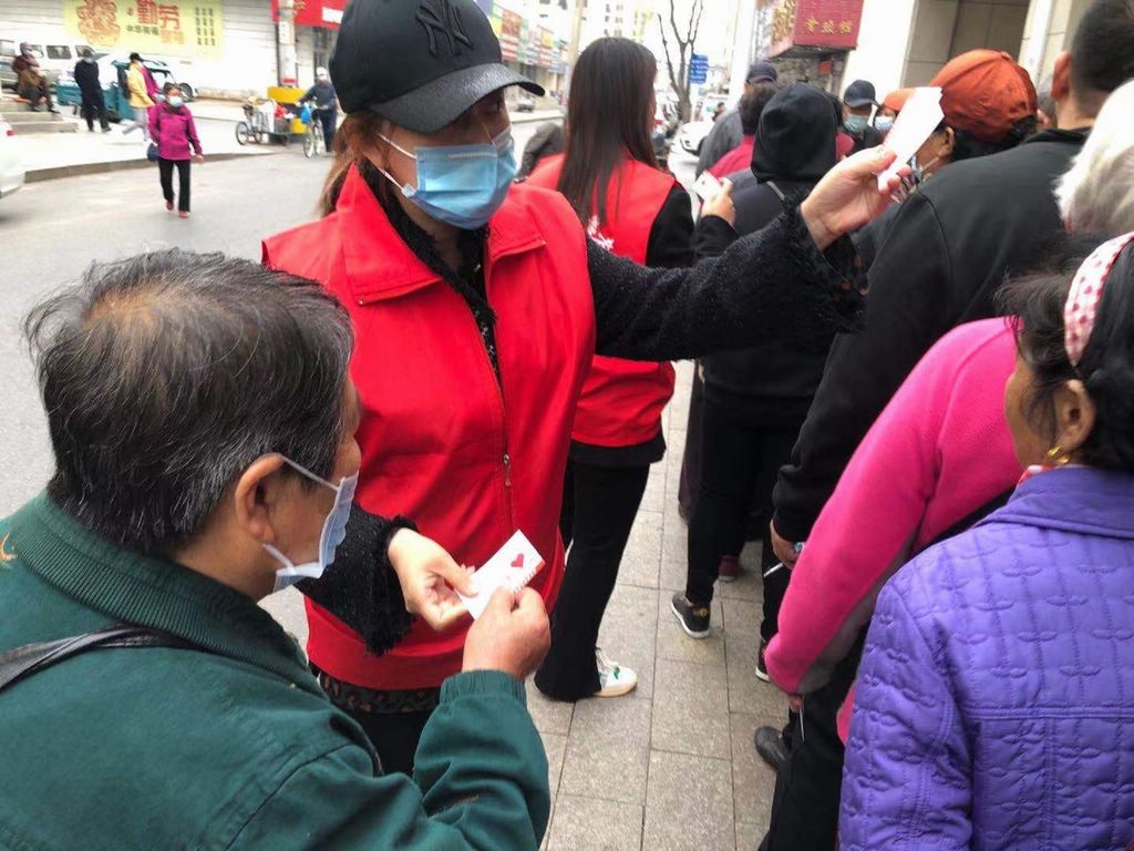 志愿者来到市民食堂门前,为来往的老年人朋友发放爱心理发卡、不动产登记知识手册,同时就大家对不动产登记关心的问题进行解答。