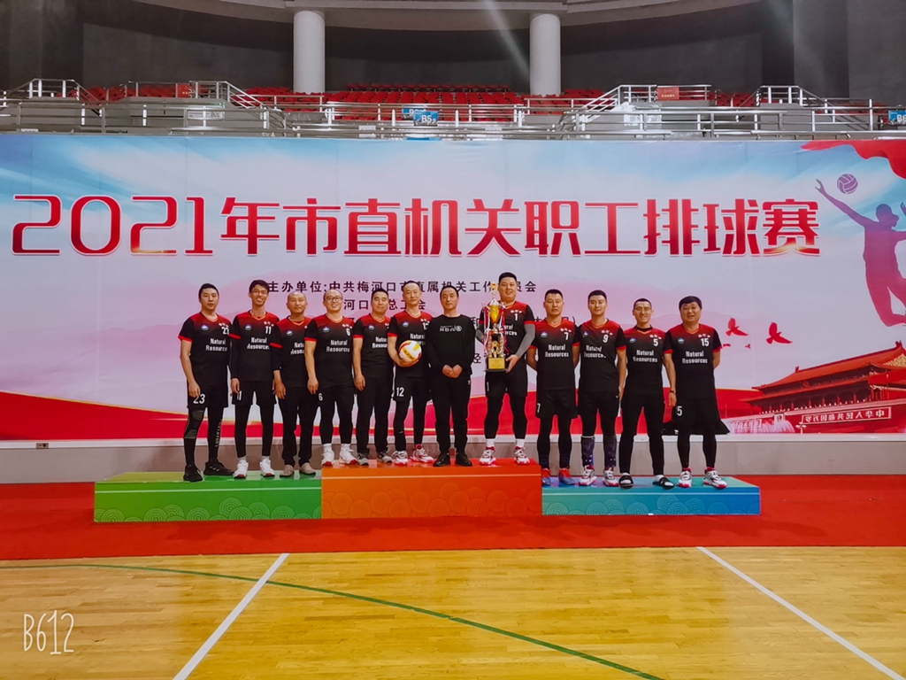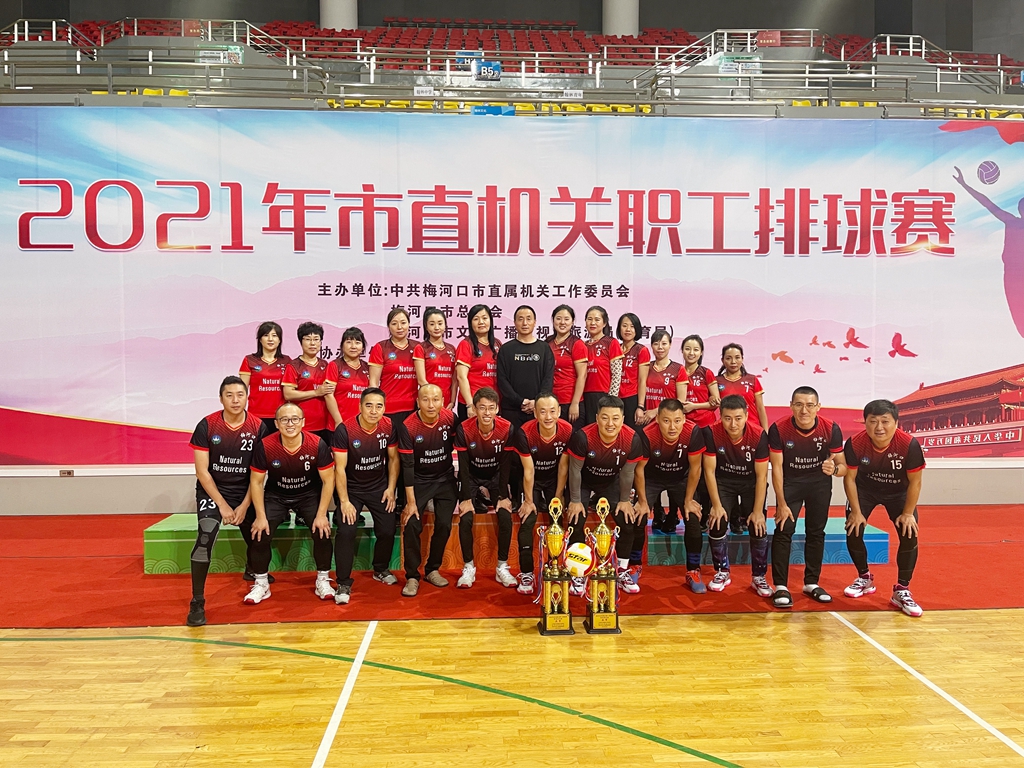 10月13日至15日,2021年梅河口市直机关职工排球赛在市羽毛球馆和莲花馆开赛,历经3天赛场艰苦博弈,市自然资源局成绩喜人,男子排球组荣获机关男子组亚军,女子排球组荣获机关女子组亚军。