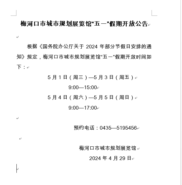 梅河口市城市规划展览馆“五一”假期开放公告