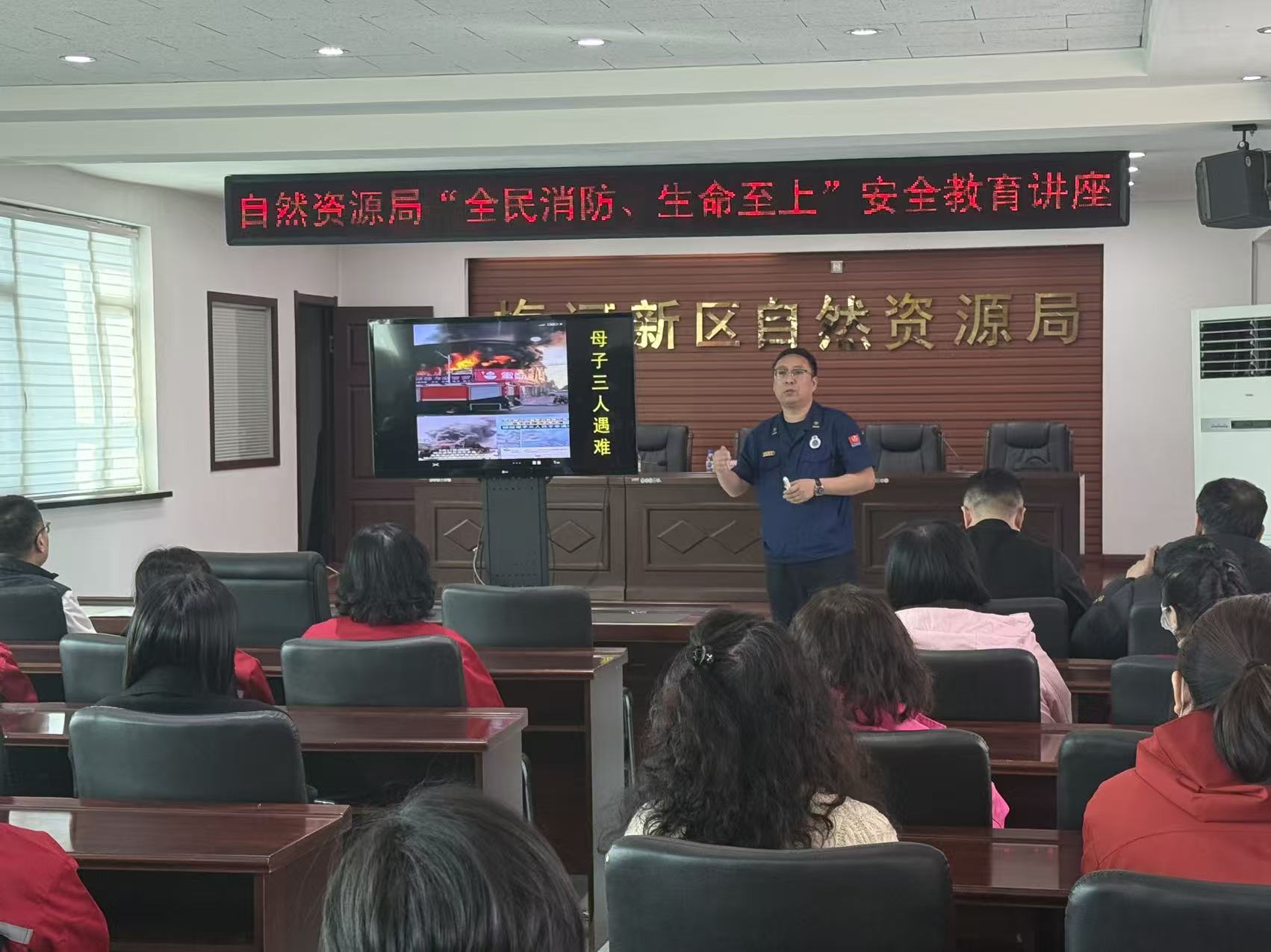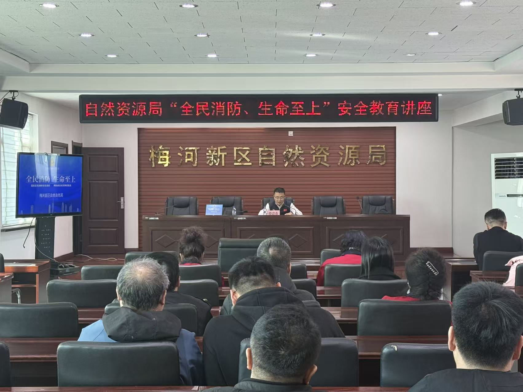 为进一步增强全体干部职工的消防安全意识,提升应急处置与自救互救能力,11月14日上午,梅河新区自然资源局组织开展了“全民消防、生命至上”主题安全教育讲座,特邀吉林省众安消防知识宣传中心黄洪亮老师现场授课。局内各科室及事业单位相关负责人与工作人员积极参加培训。