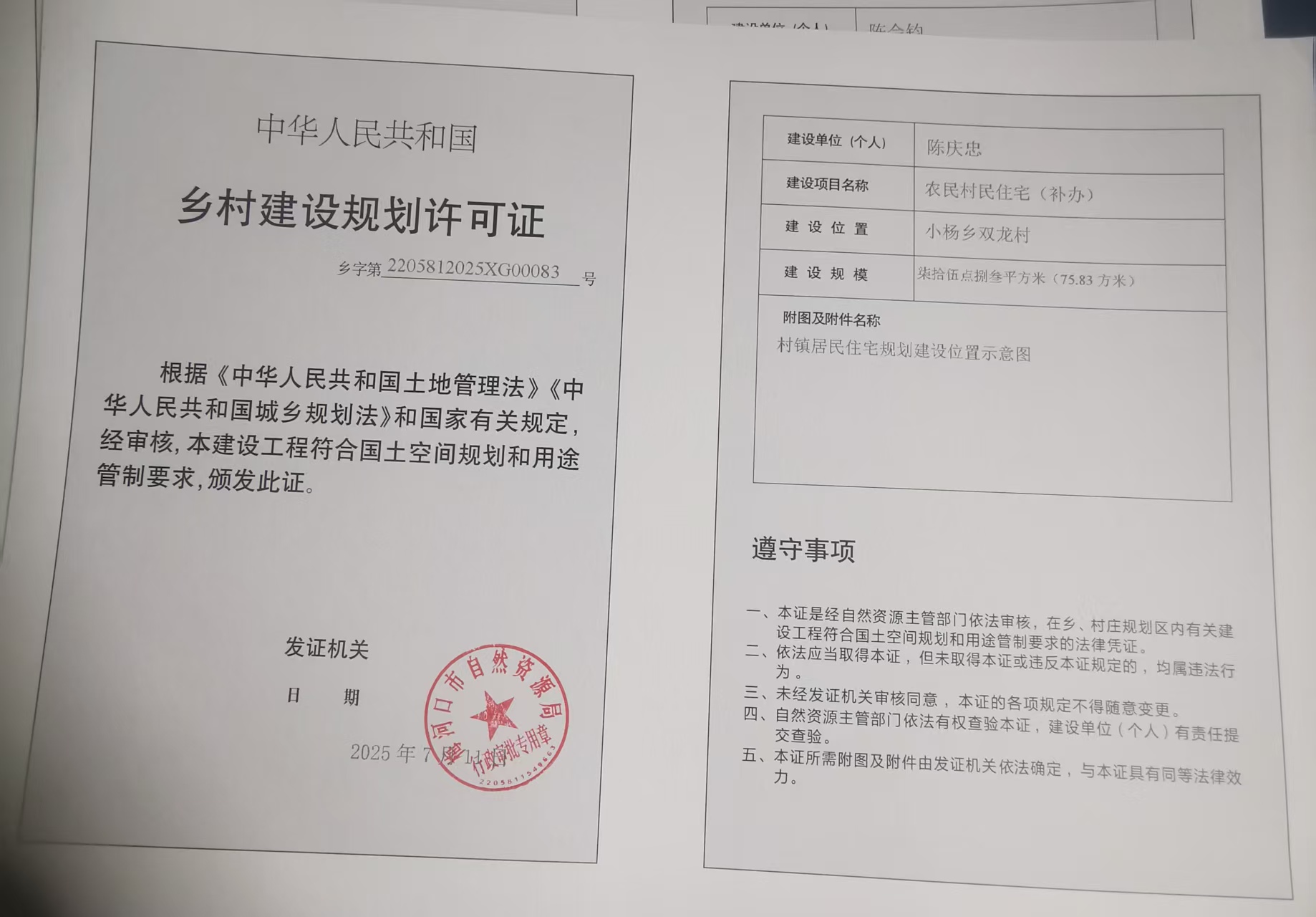 乡村建设规划许可证—陈庆忠
