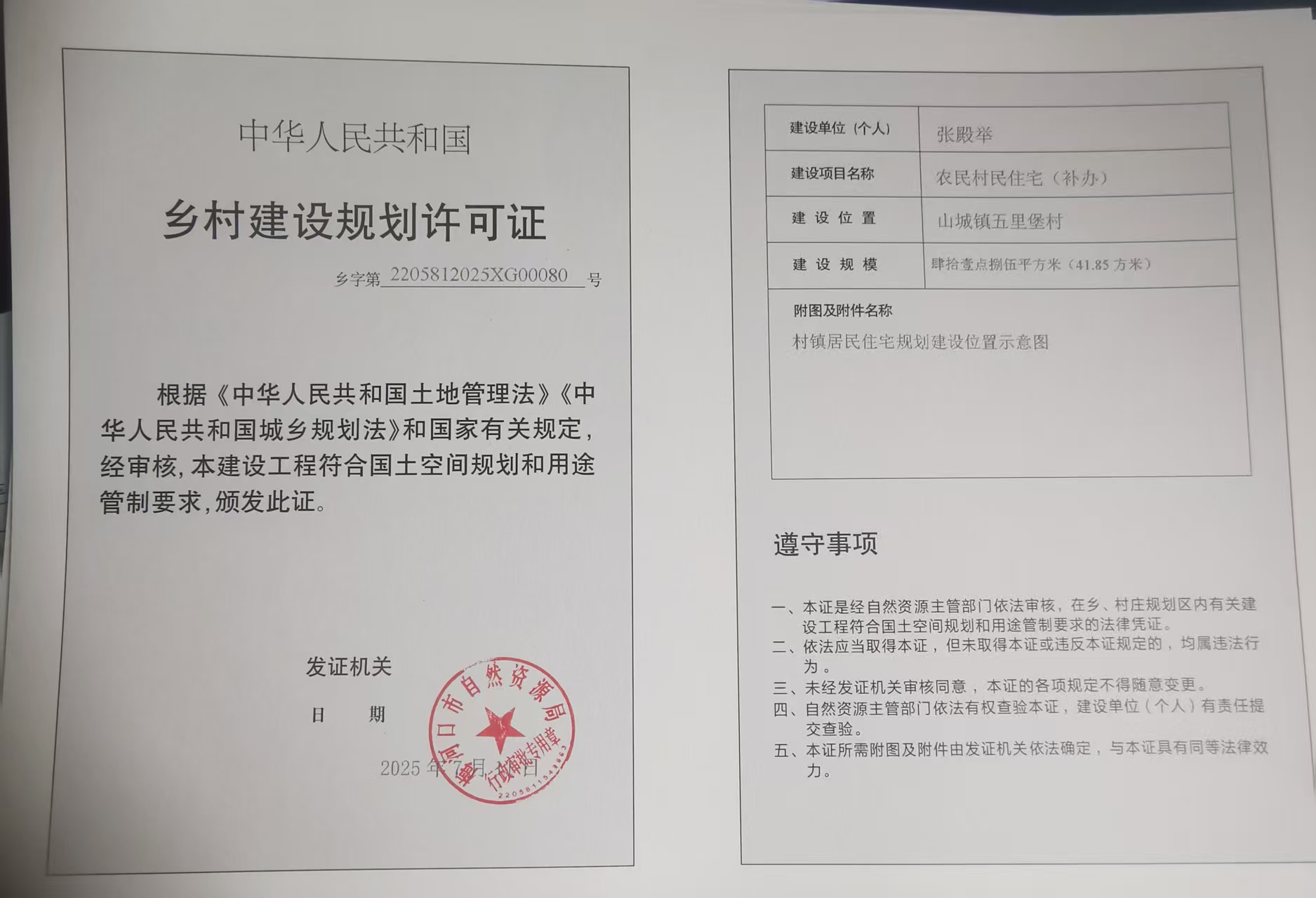 乡村建设规划许可证—张殿举