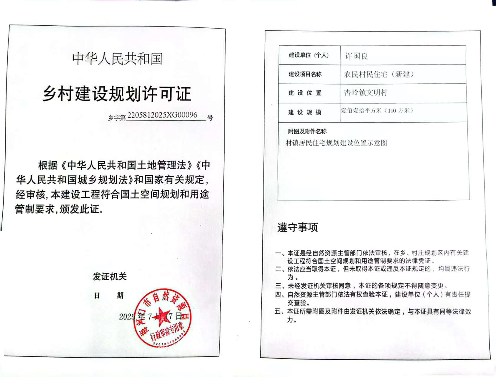 乡村建设规划许可证—许国良