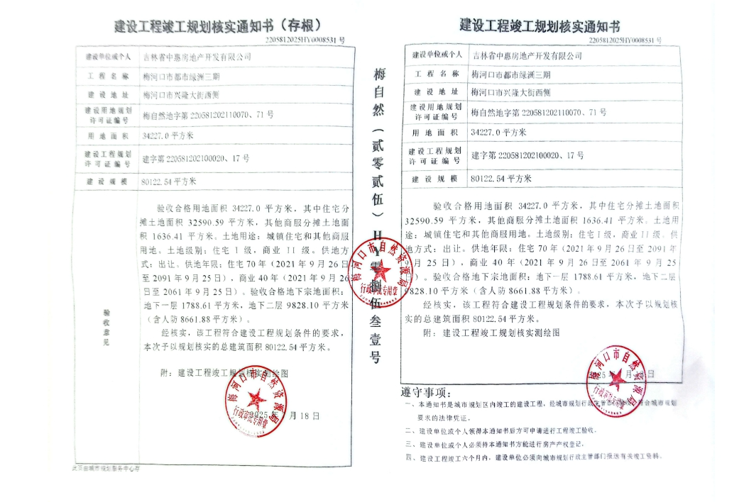 建设工程竣工规划核实通知书—梅河口市都市绿洲三期