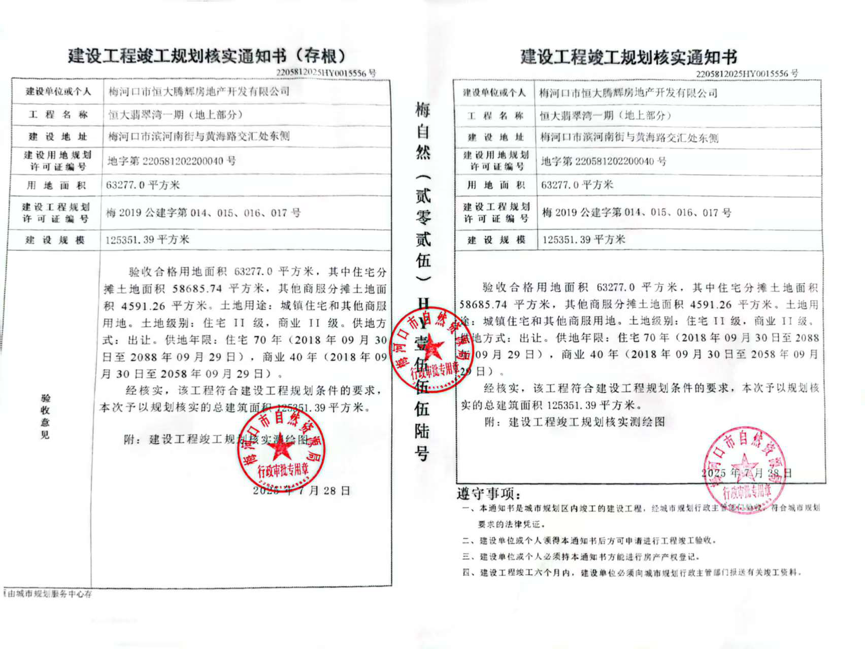 规划条件核实与土地核验合格证—恒大翡翠湾一期(地上部分)
