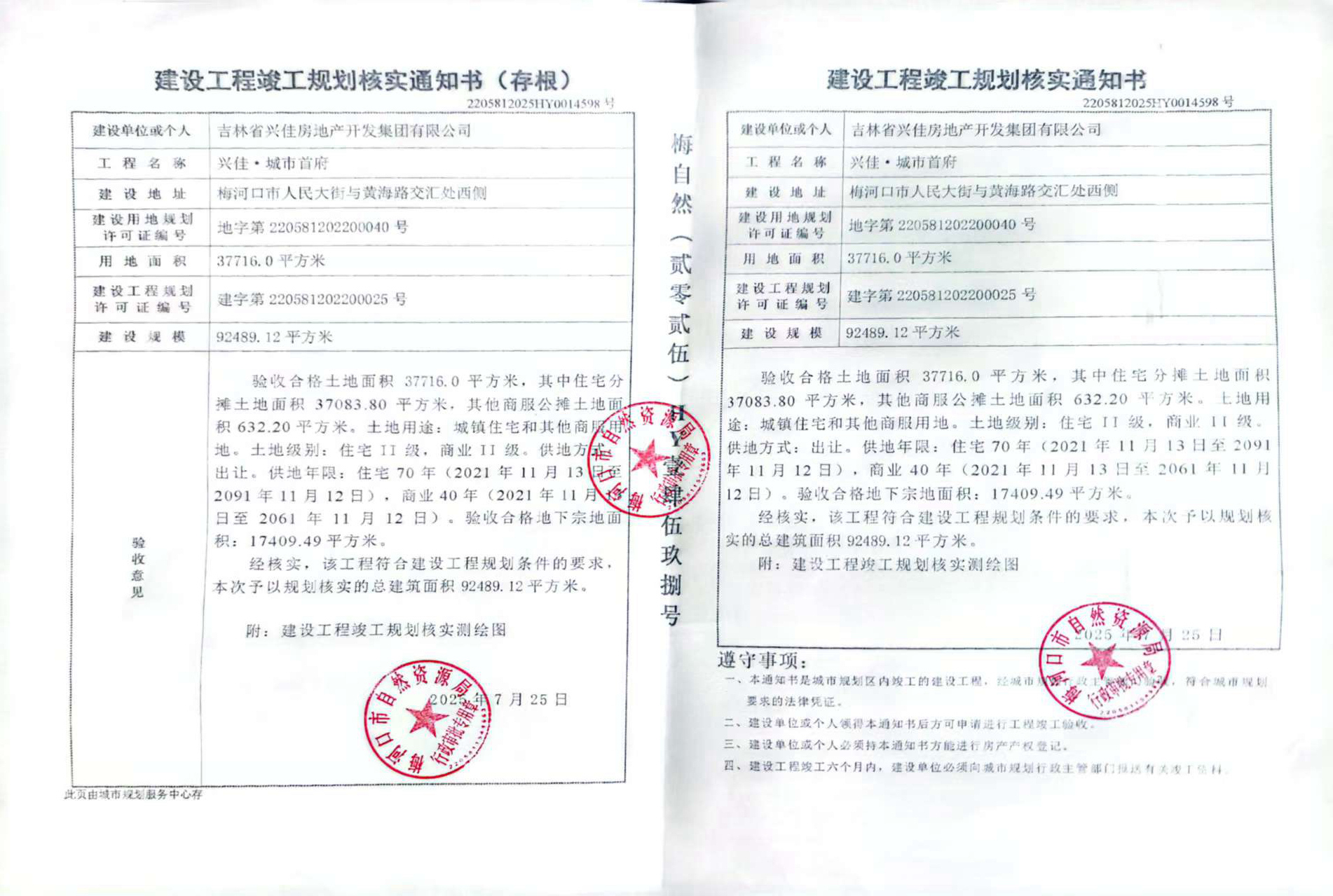 规划条件核实与土地核验合格证—兴佳·城市首府