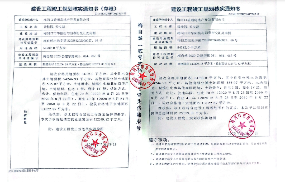 建设工程竣工规划核实通知书—碧桂园.天悦湖