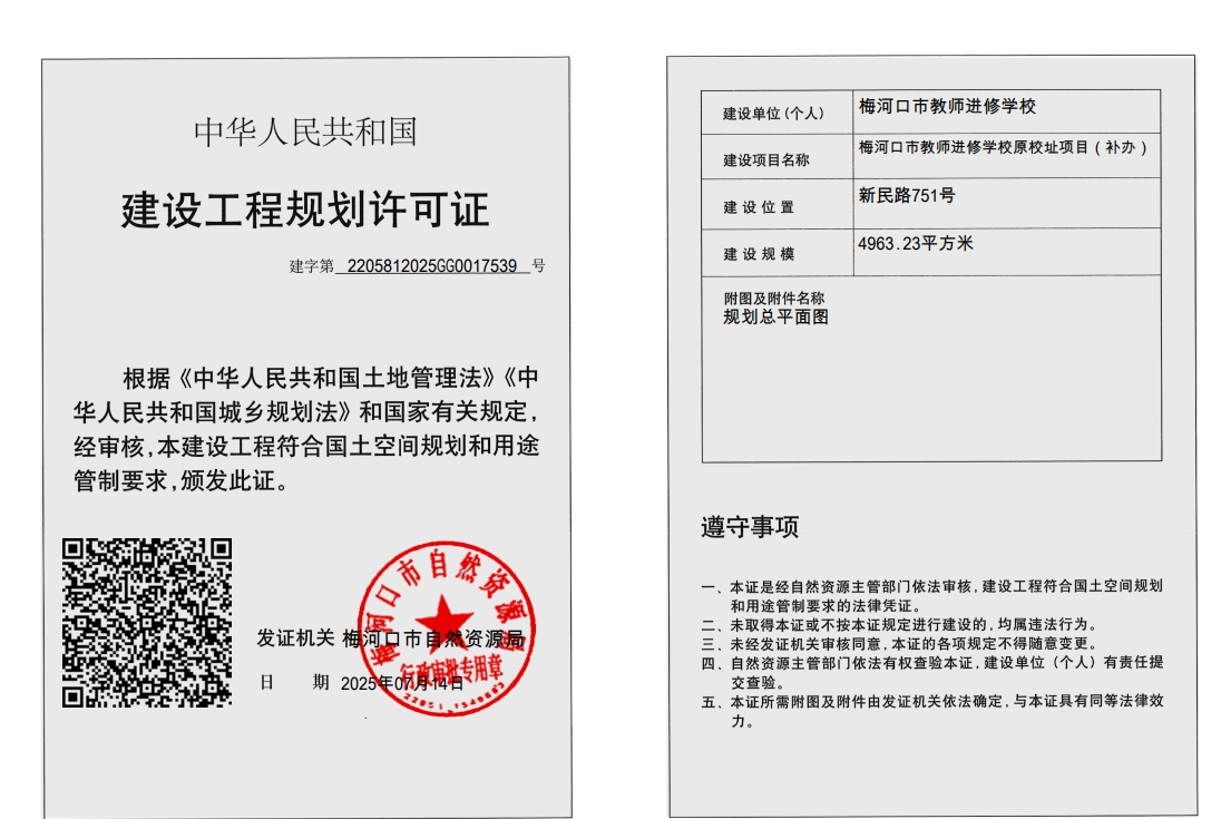 建设工程规划许可证—梅河口市教师进修学校原校址项目(补办)