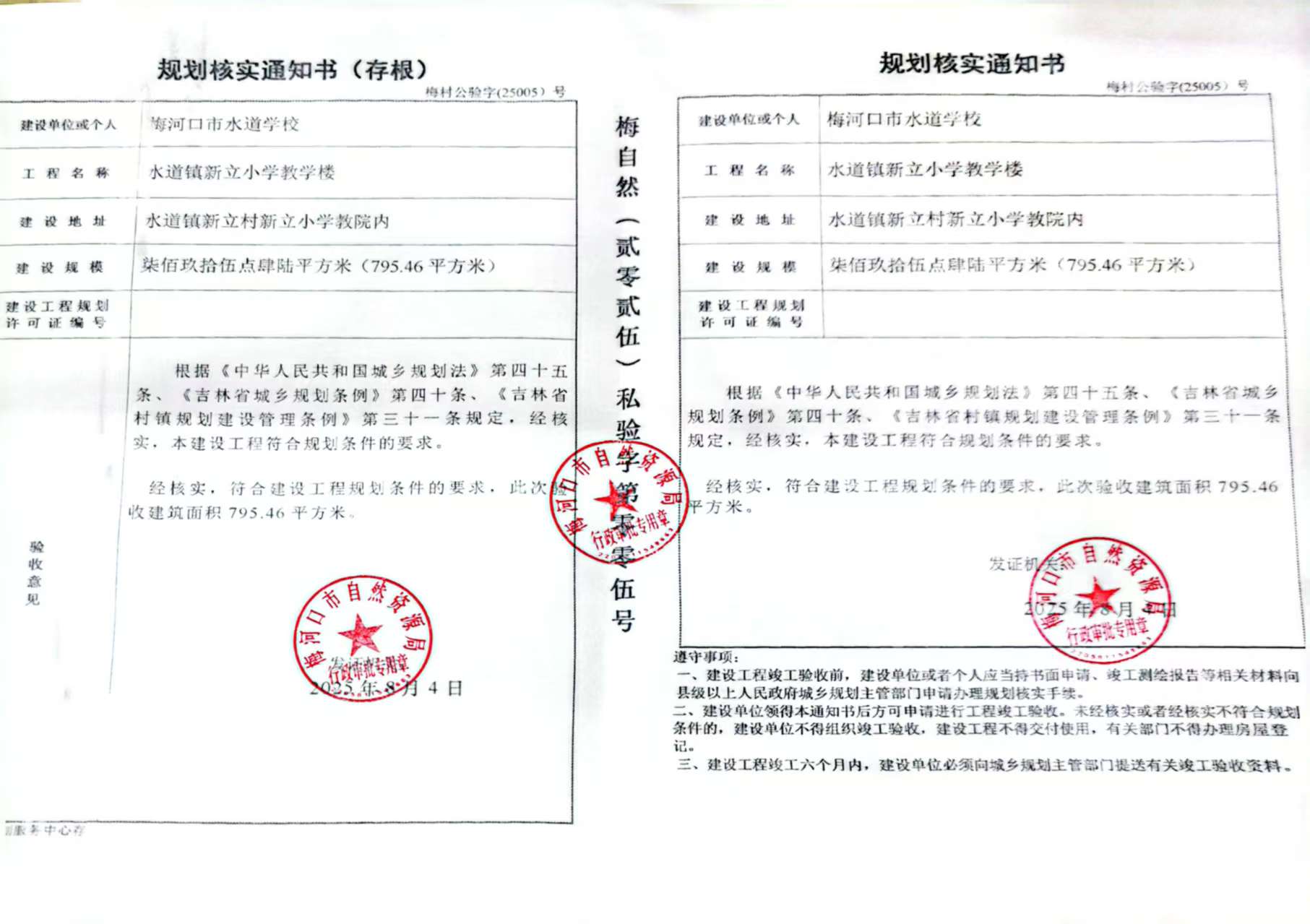 规划核实通知书—梅河口市水道学校