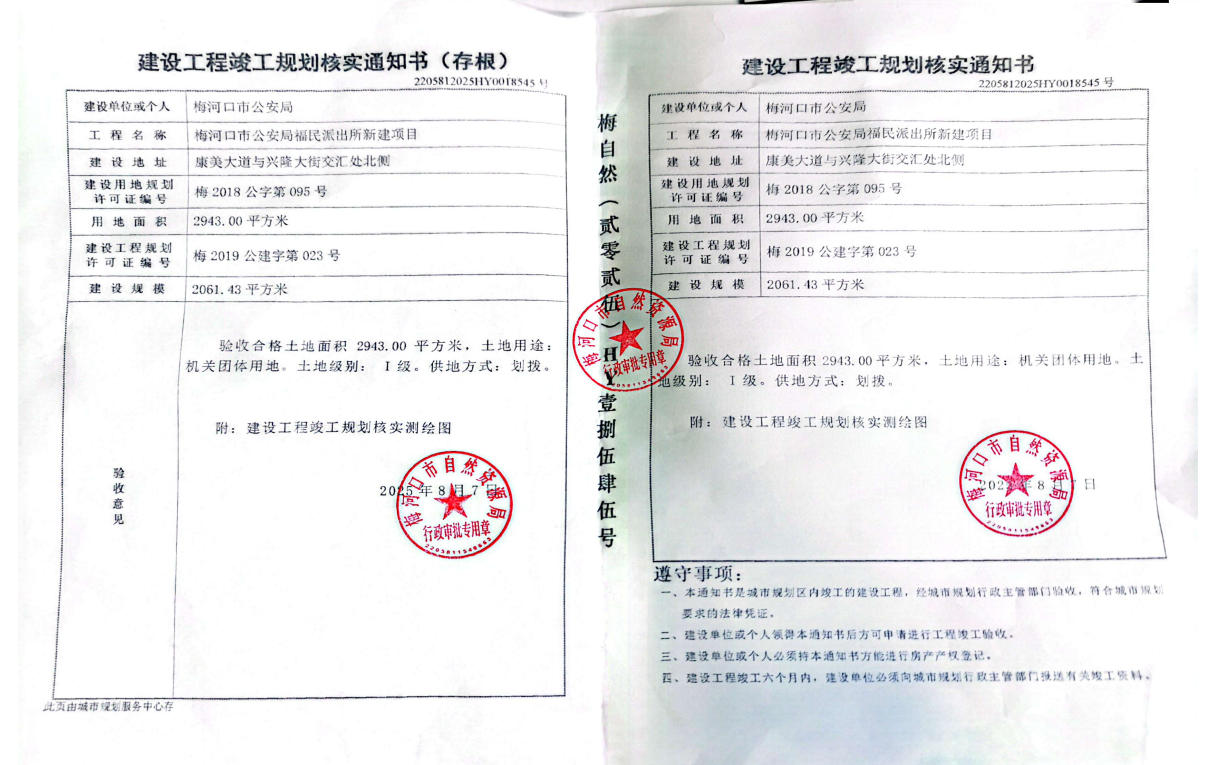 建设工程竣工规划核实通知书—梅河口市公安局福民派出所建设项目