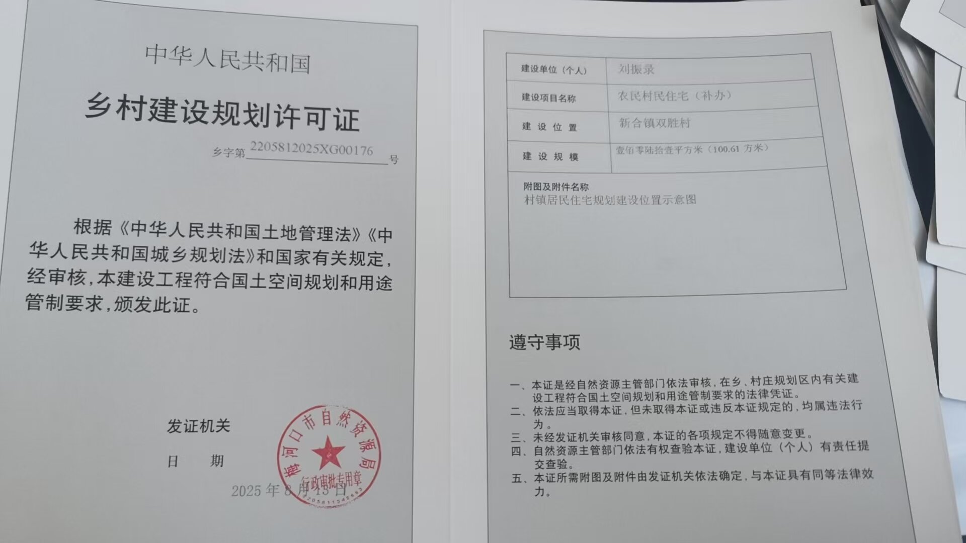 乡村建设规划许可证—刘振录