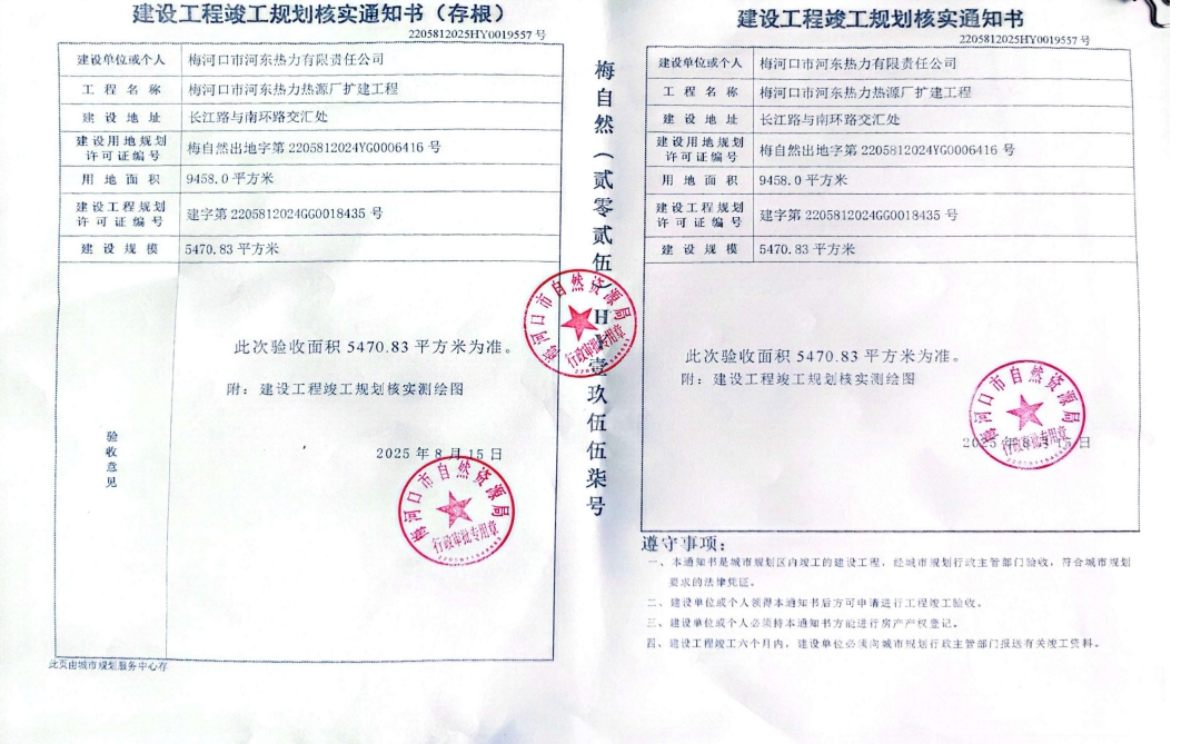 建设工程规划核实通知书—梅河口市河东热力有限公司