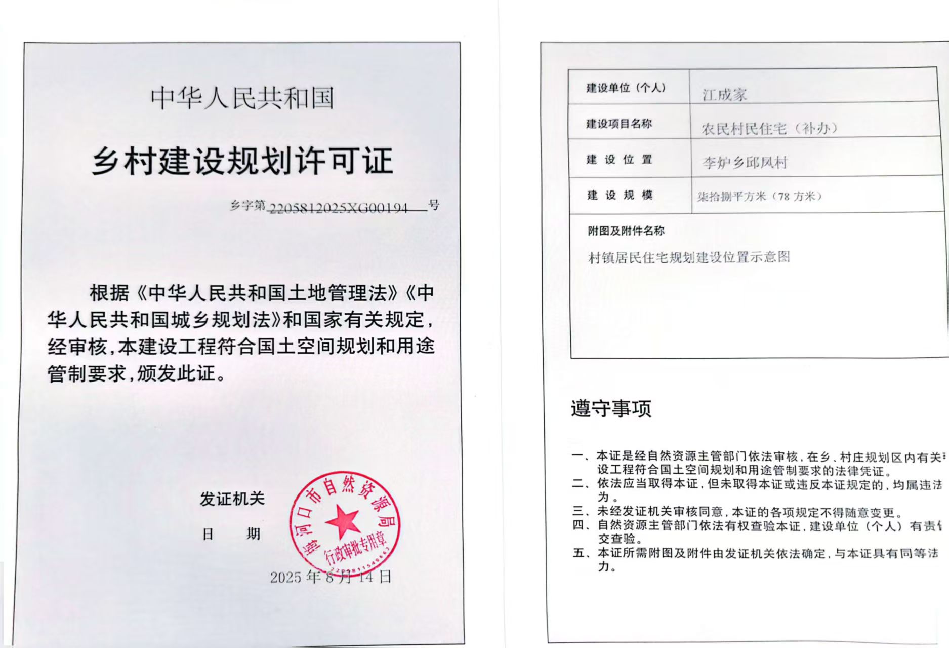 乡村建设规划许可证—江成家