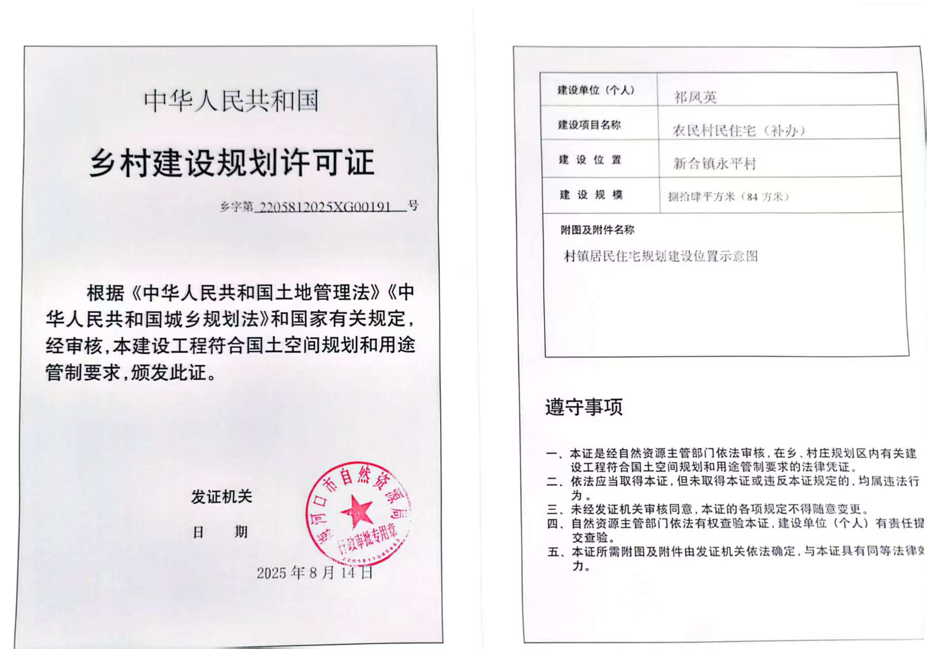 乡村建设规划许可证—祁凤英