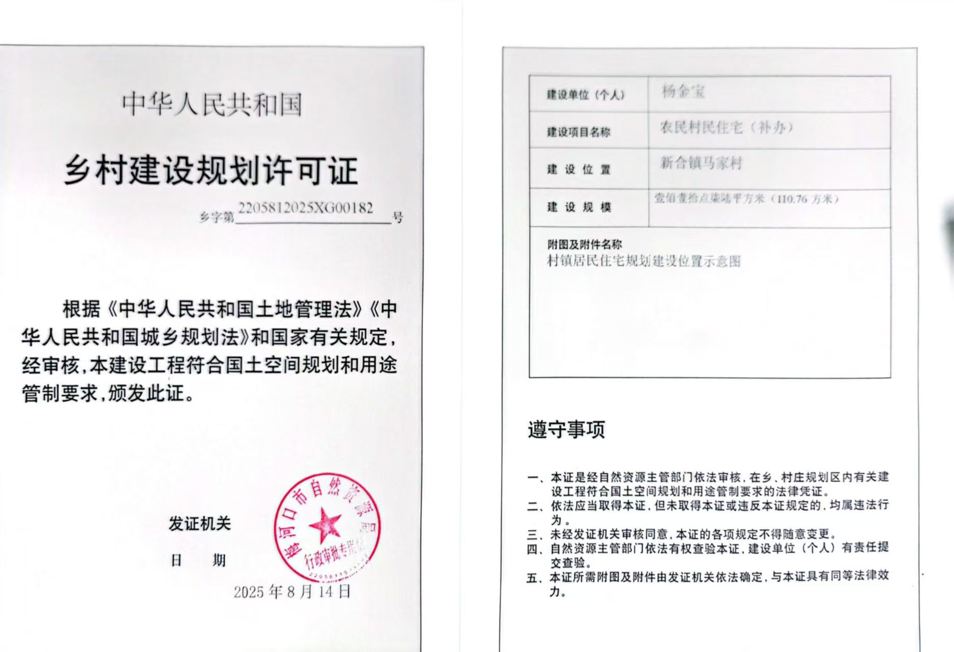 乡村建设规划许可证—杨金宝