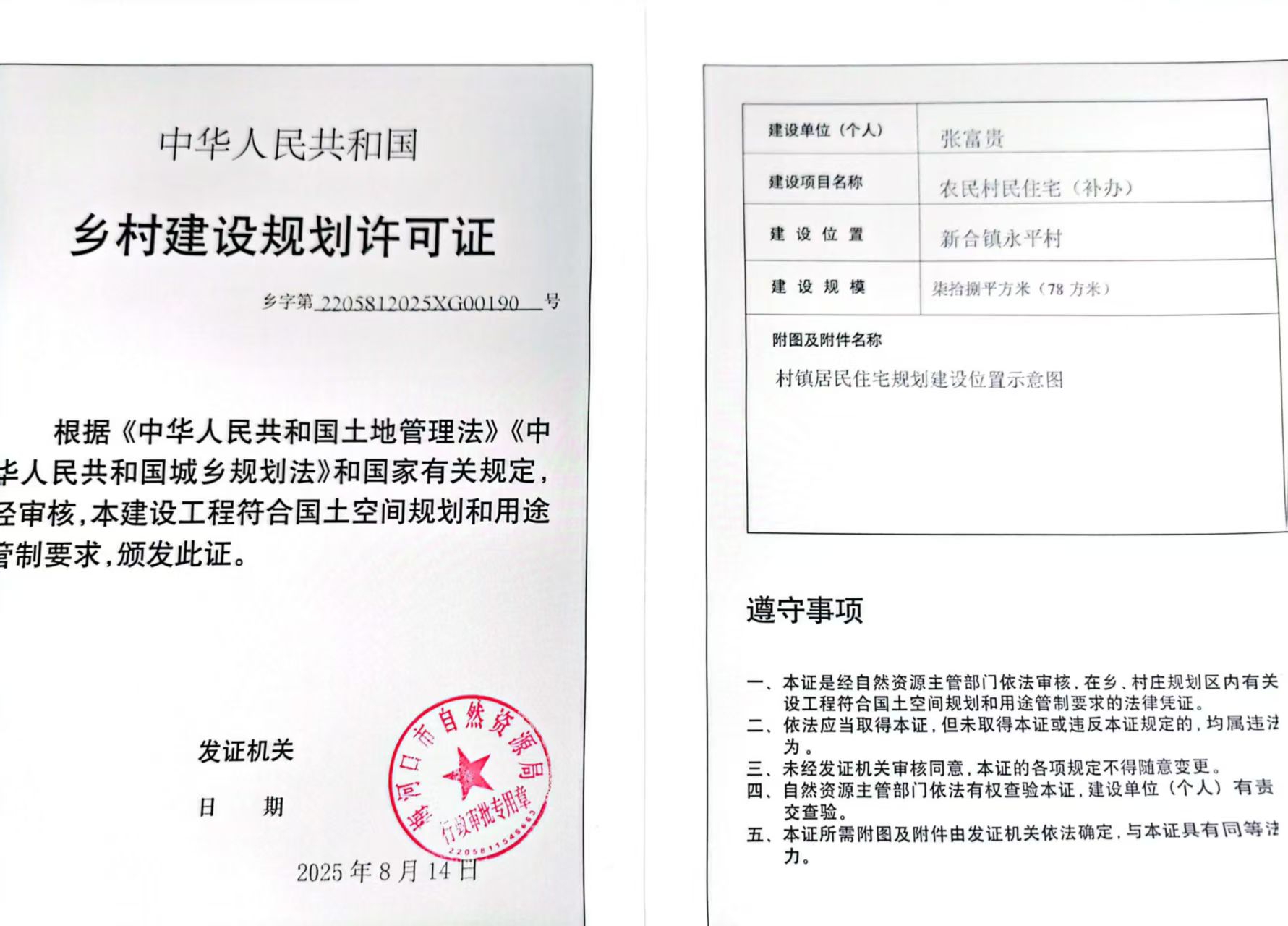乡村建设规划许可证—张富贵