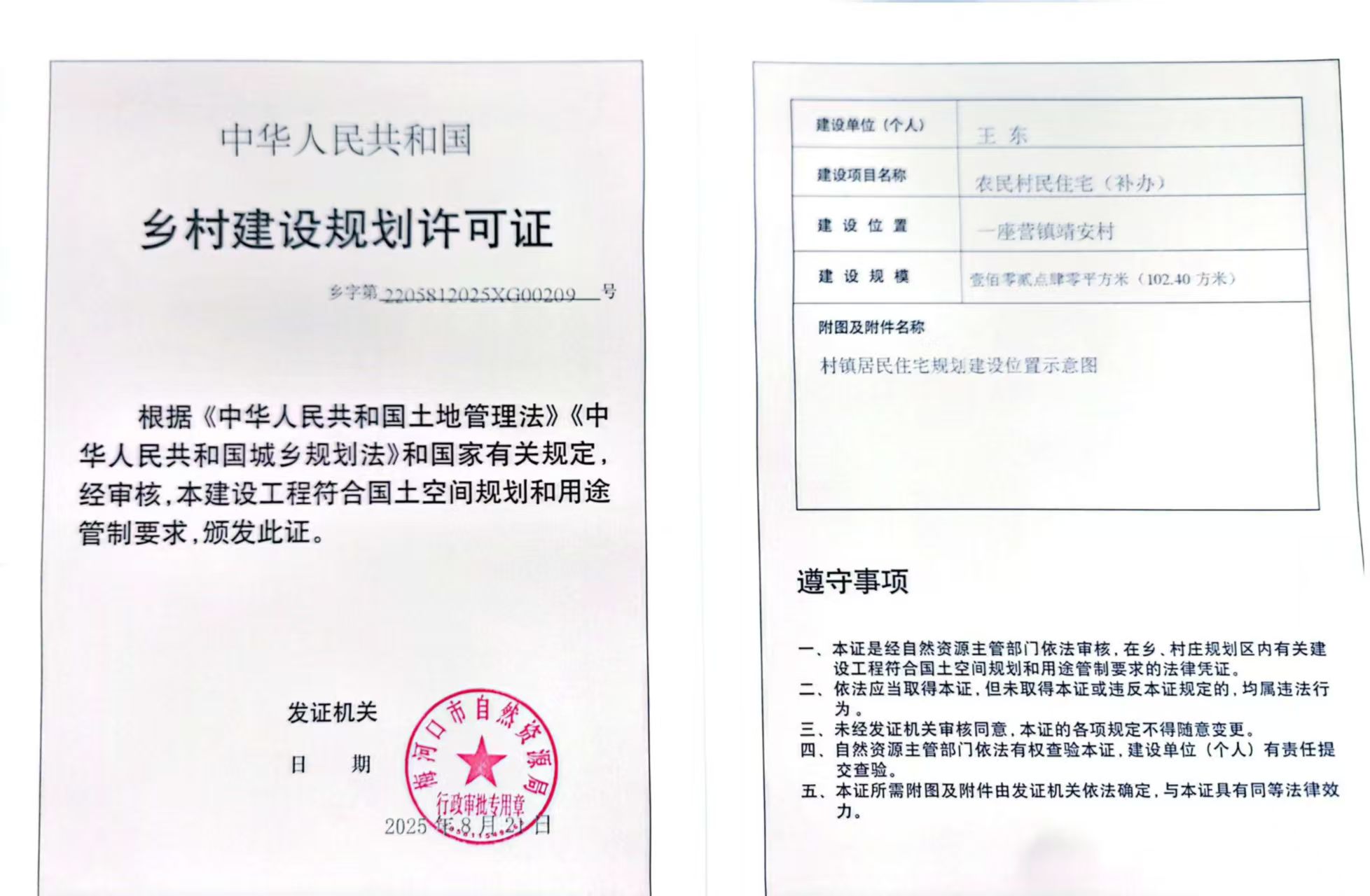 乡村建设规划许可证—王 东