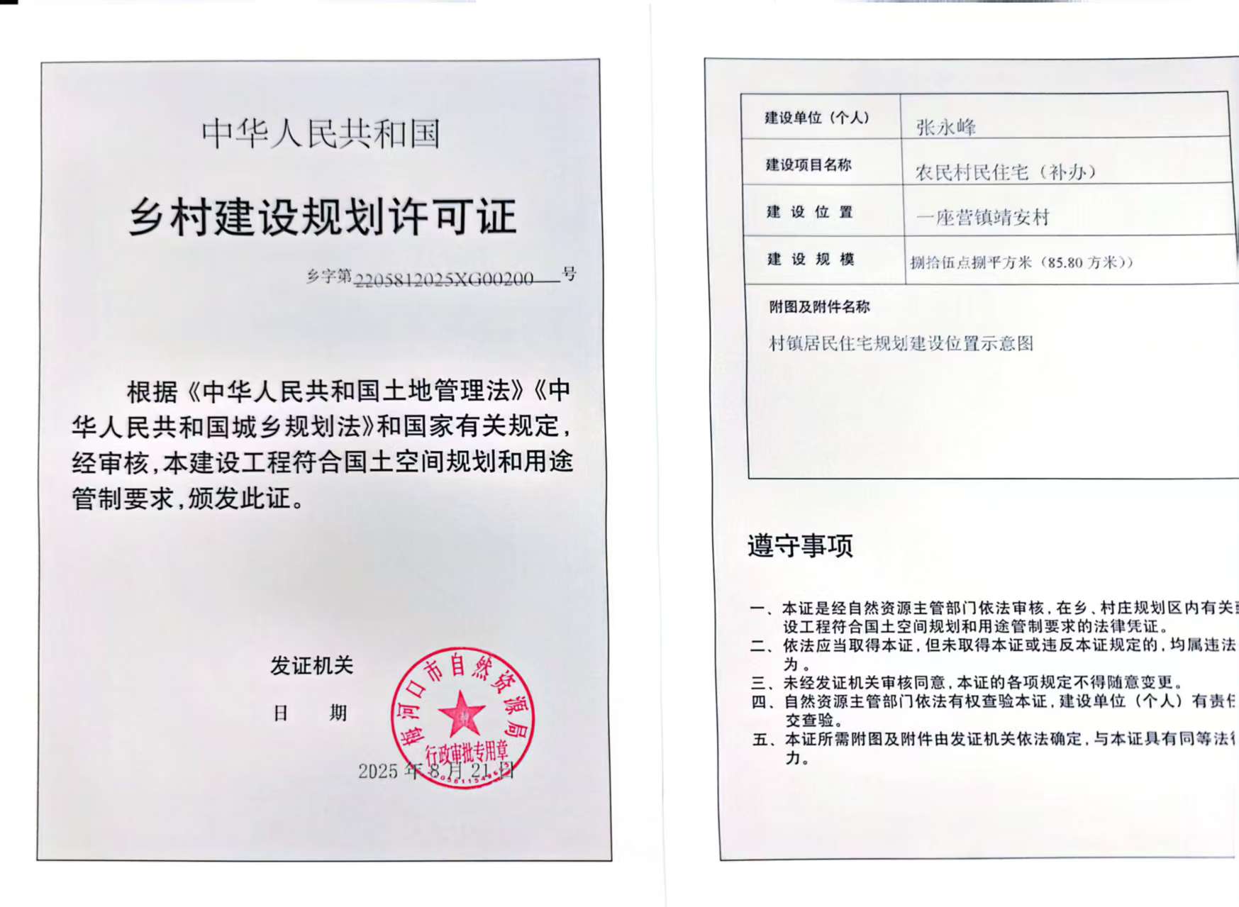 乡村建设规划许可证—张永峰