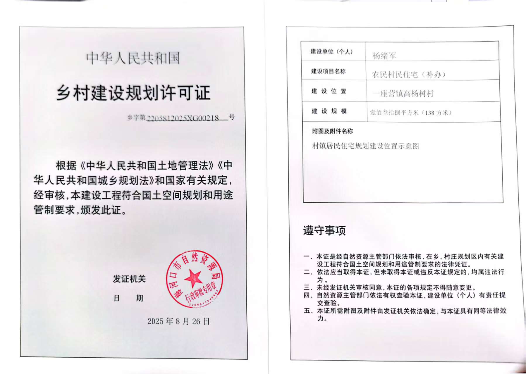 乡村建设规划许可证—杨绪军