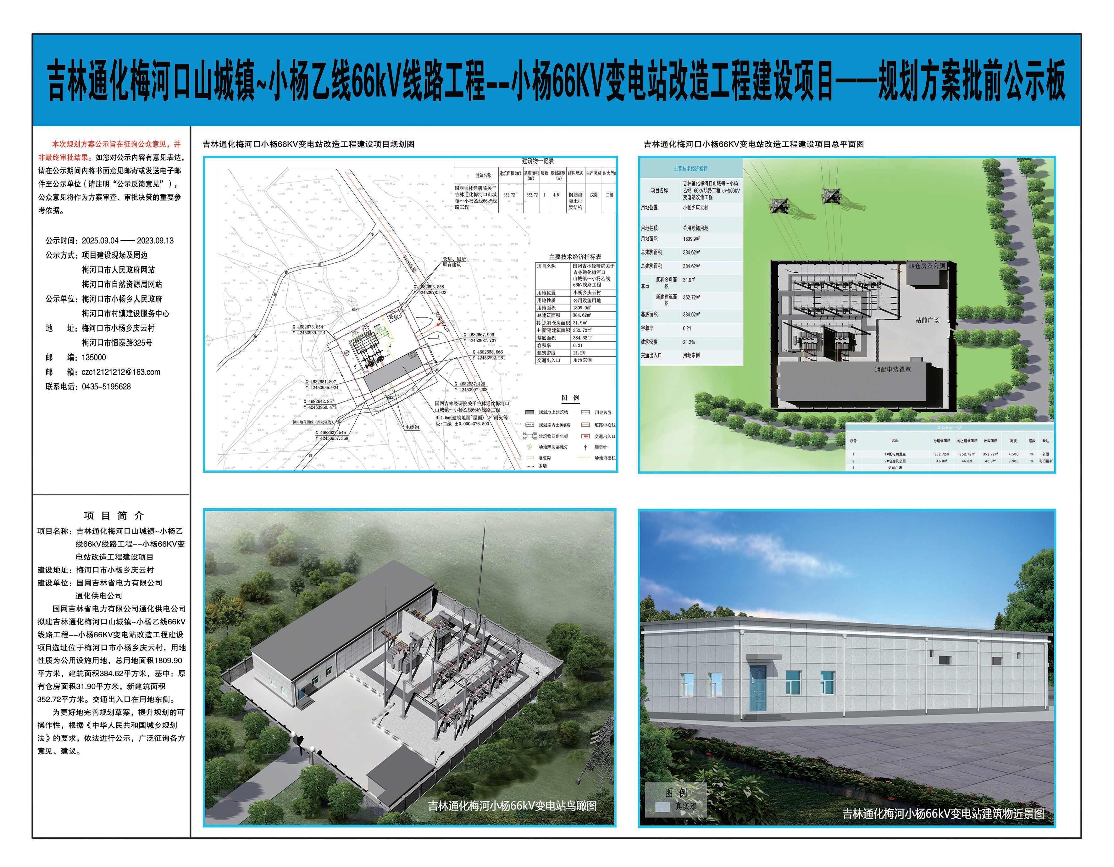 吉林通化梅河口山城镇-小杨乙线66KV线路工程-小杨66KV变电站改造工程建设项目--规划方案批前公示板