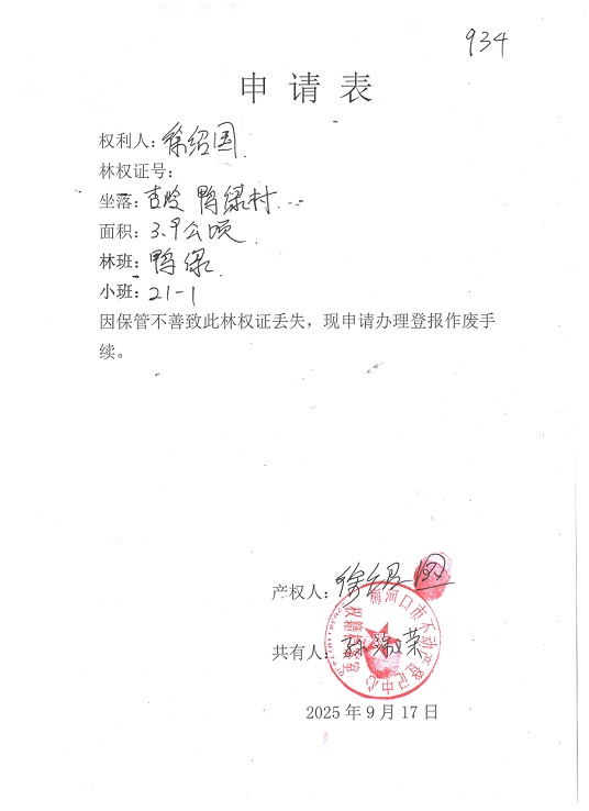 关于徐绍国林权证丢失的公告