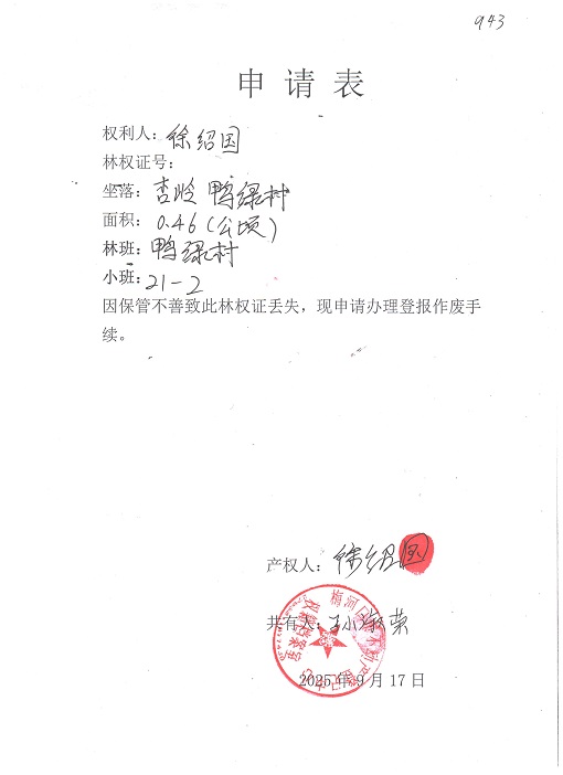 关于徐绍国林权证丢失的公告