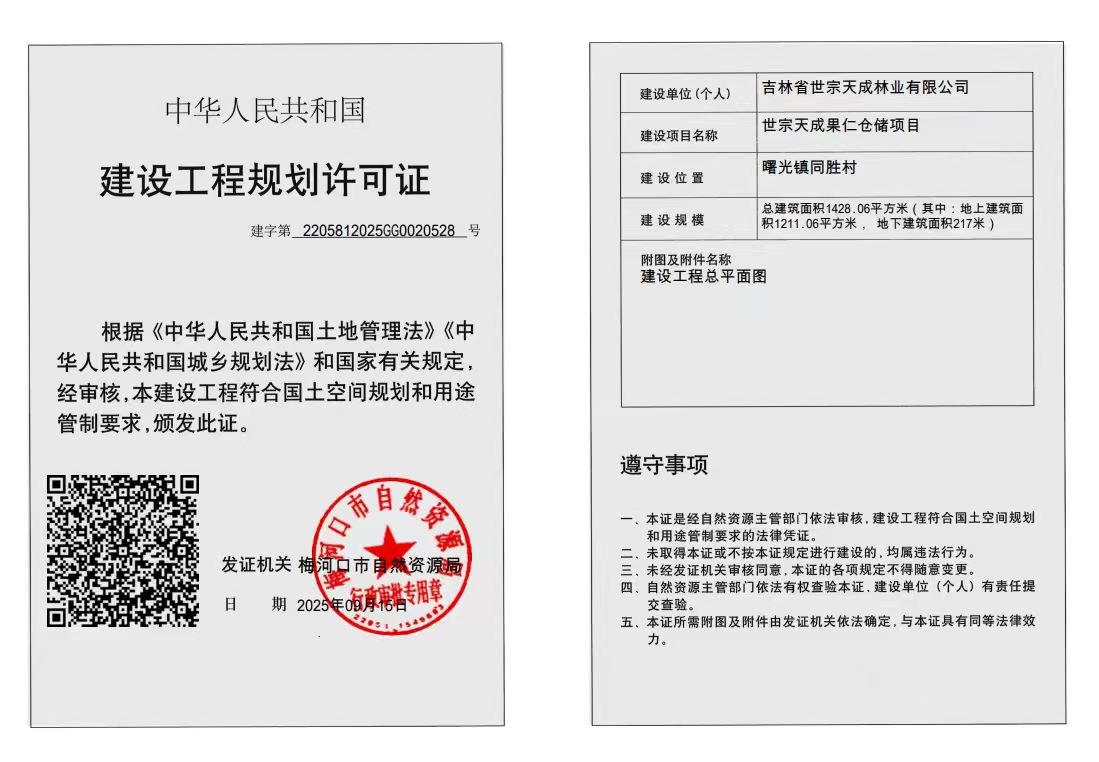 世宗天成果仁仓储项目—中华人民共和国建设工程规划许可证
