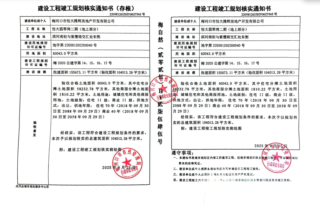 规划条件核实与土地核验合格证—恒大翡翠湾二期地上部分