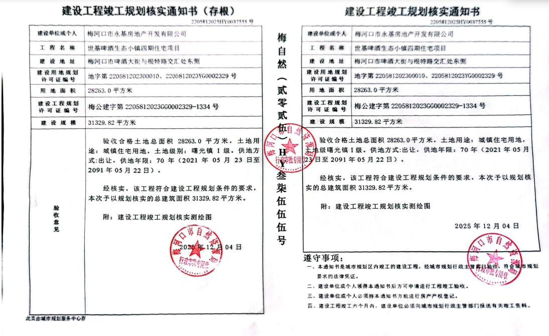 规划条件核实与土地核验合格证—世基啤酒生态小镇四期住宅项目