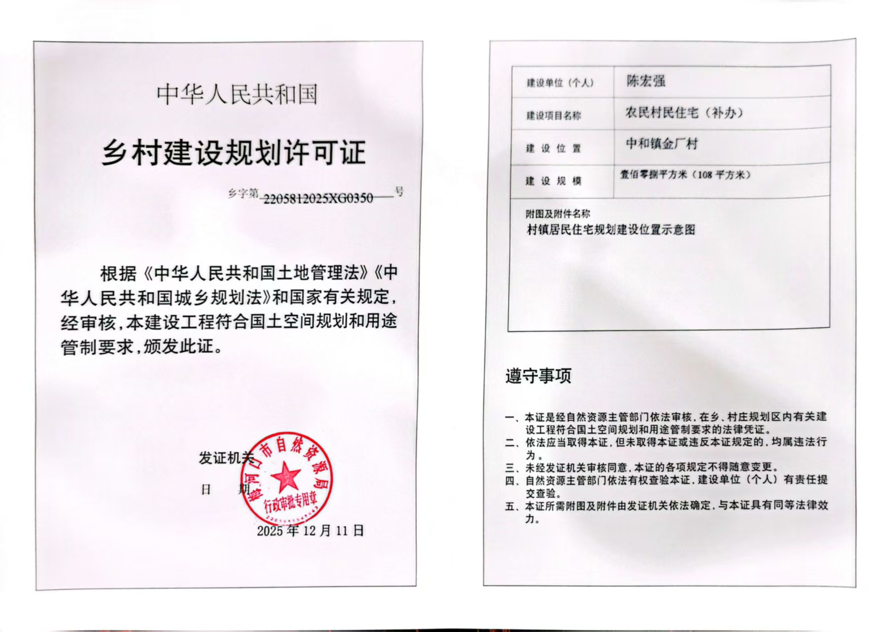 乡村建设规划许可证—陈宏强