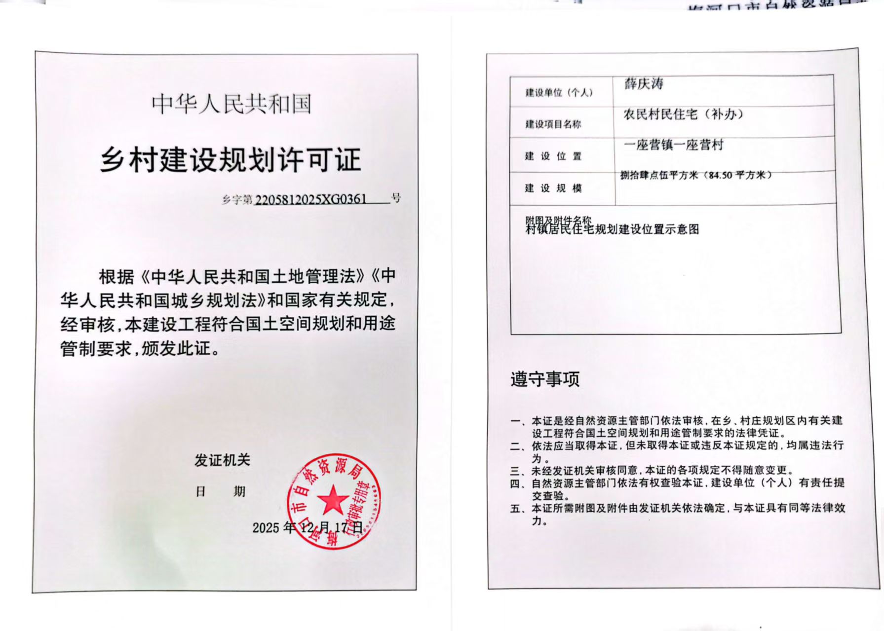 乡村建设用地规划许可证—薛庆涛