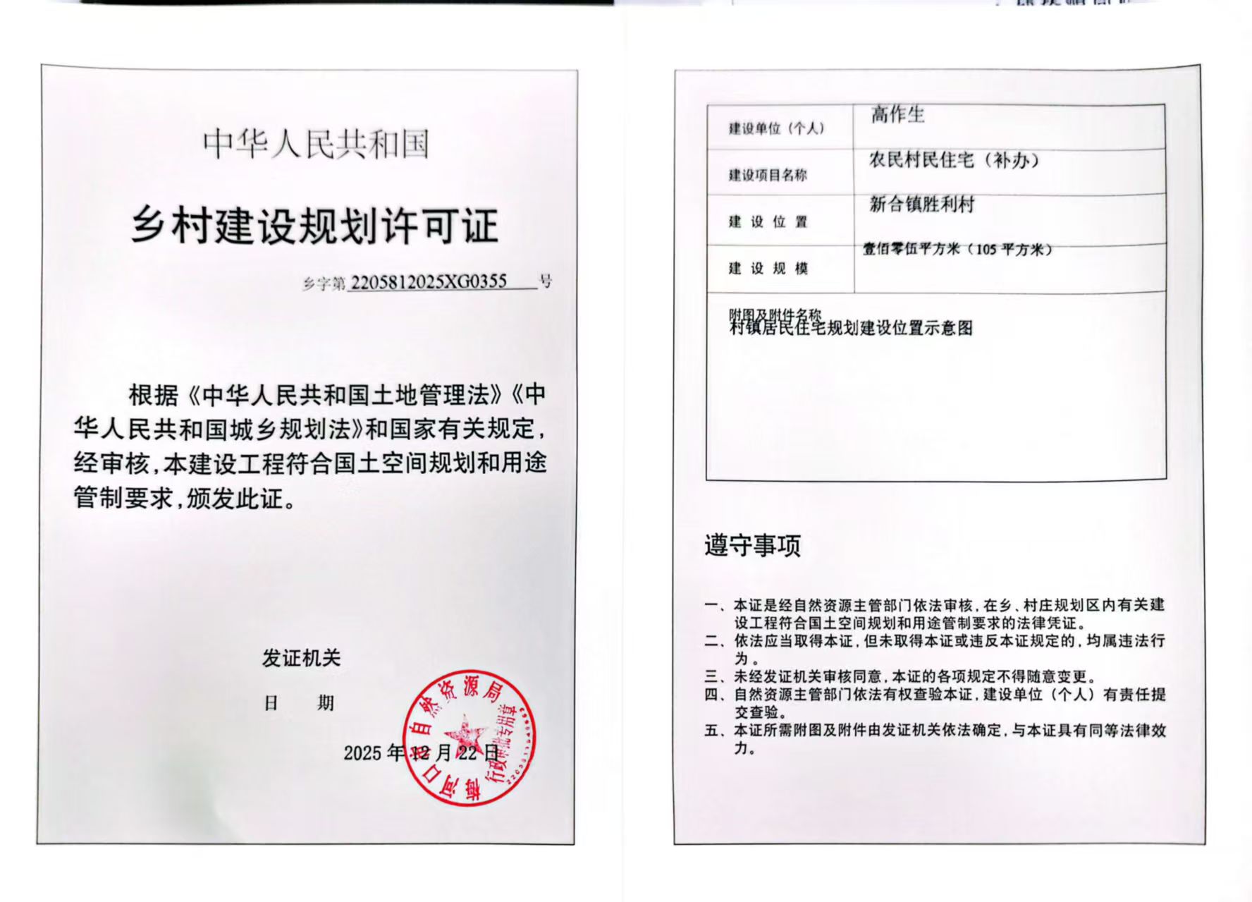 乡村建设用地规划许可证—高作生