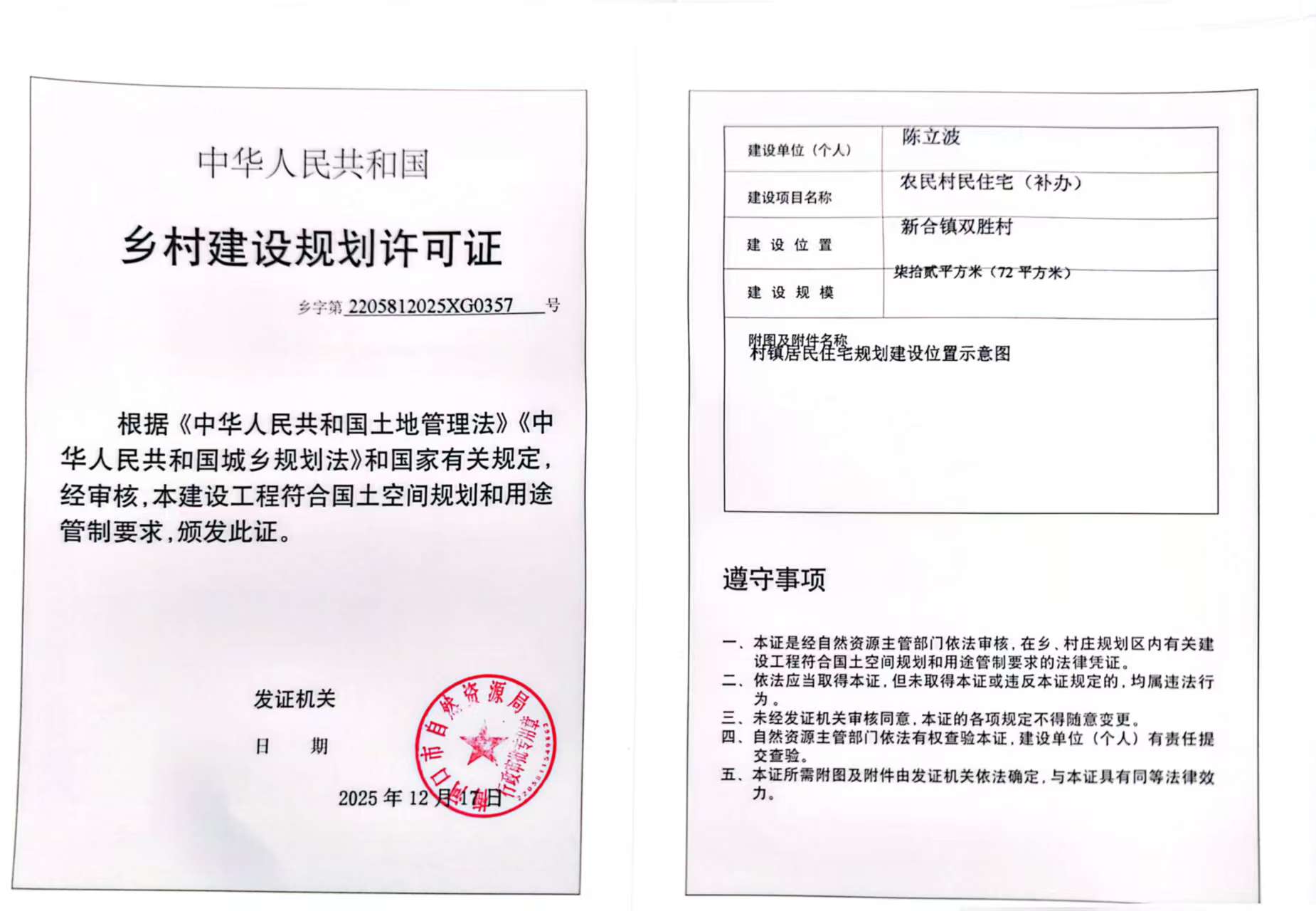 乡村建设用地规划许可证—陈立波