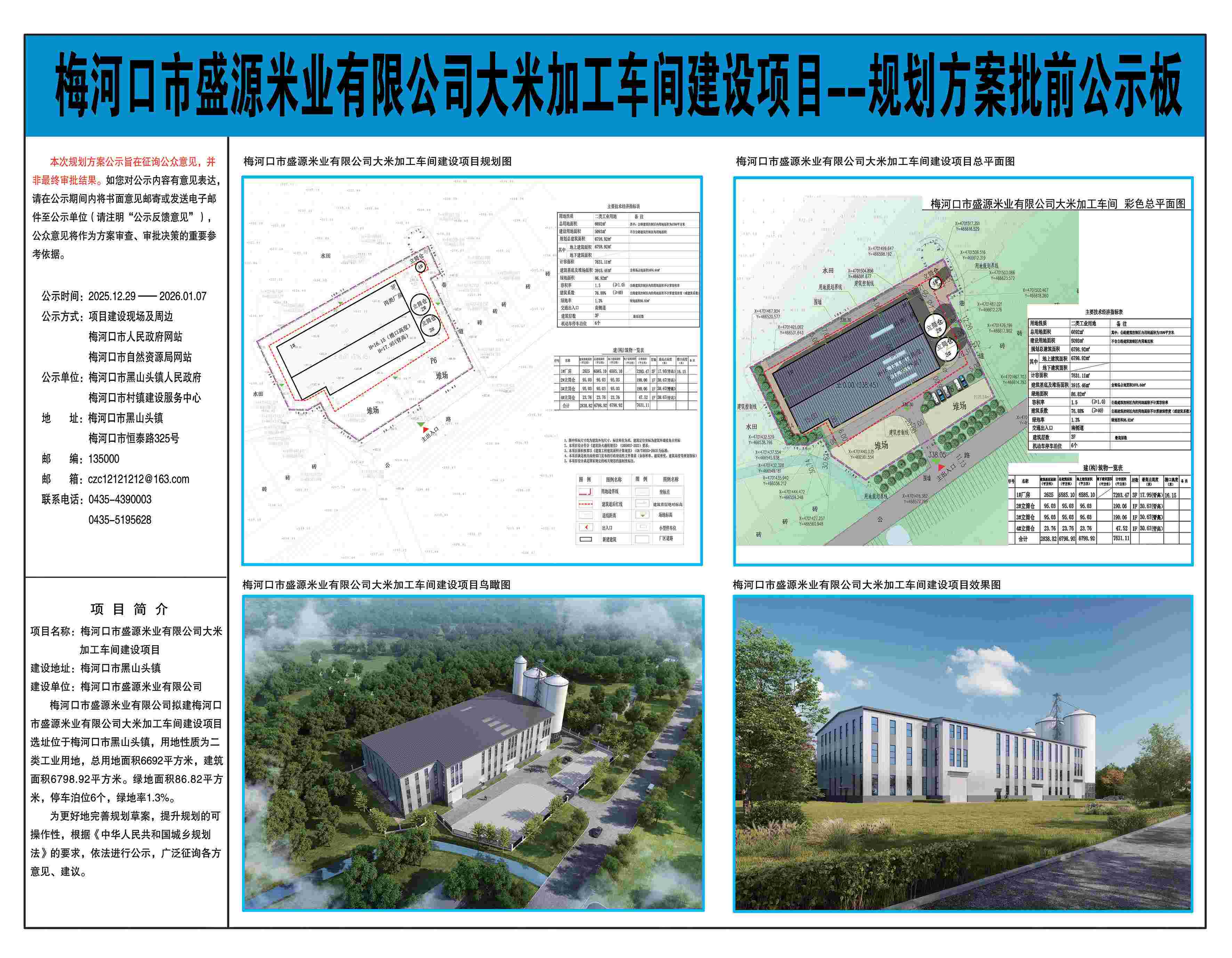 梅河口市盛源米业有限公司大米加工车间建设项目-规划方案批前公示
