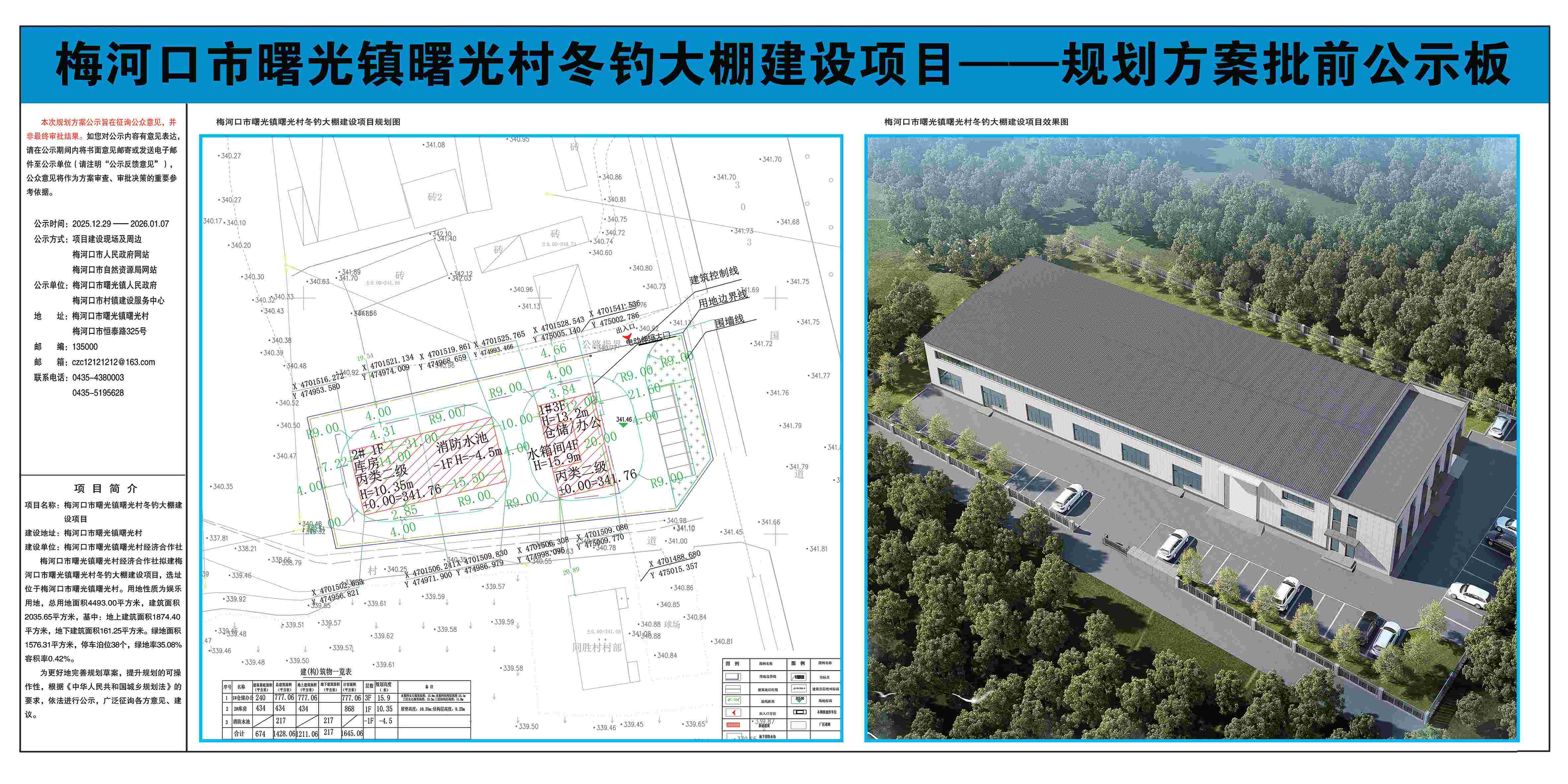 梅河口市曙光镇曙光村农村经济合作社东钓大棚建设项目-规划方案批前公示