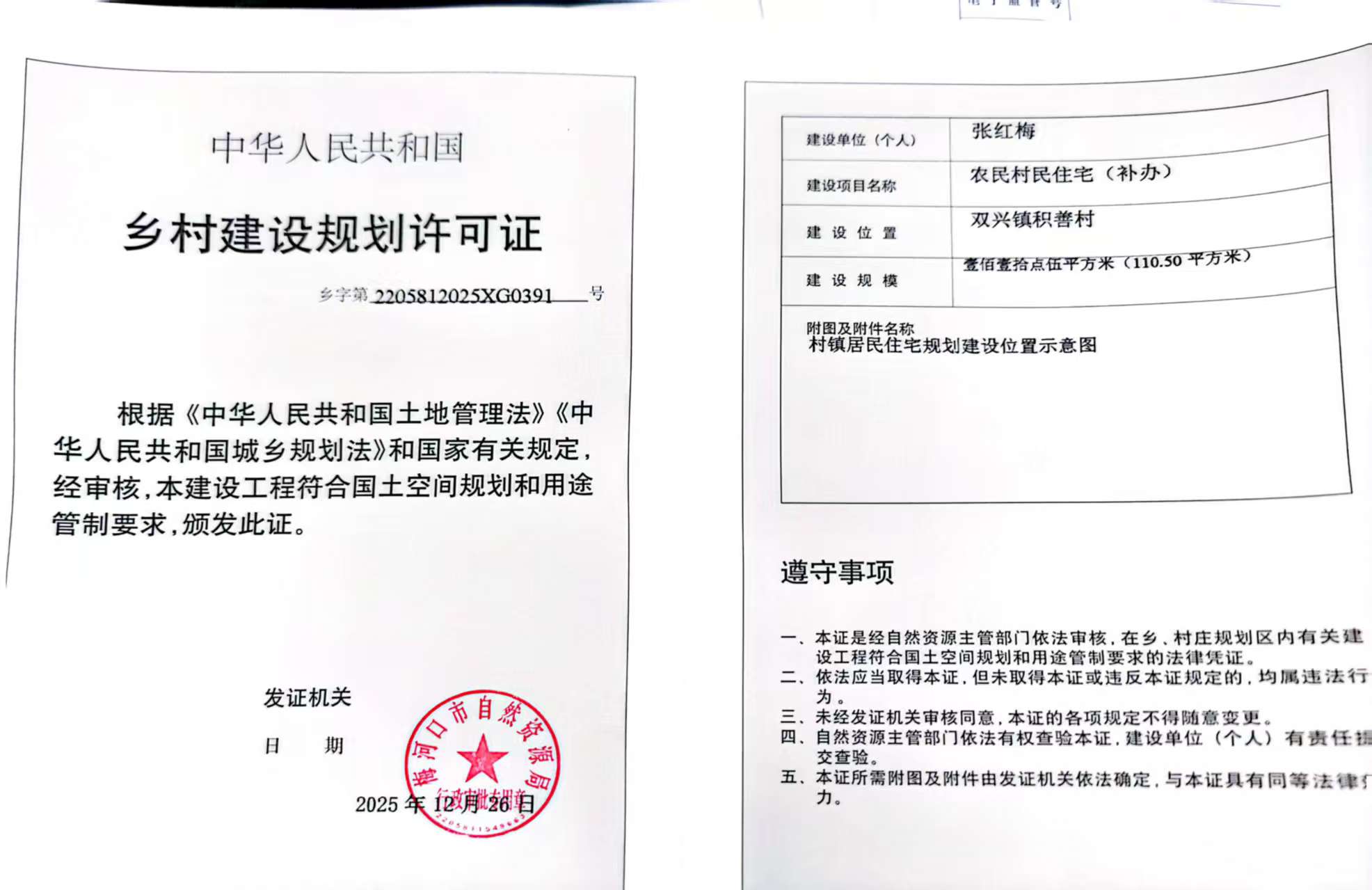 乡村建设规划许可证—张红梅