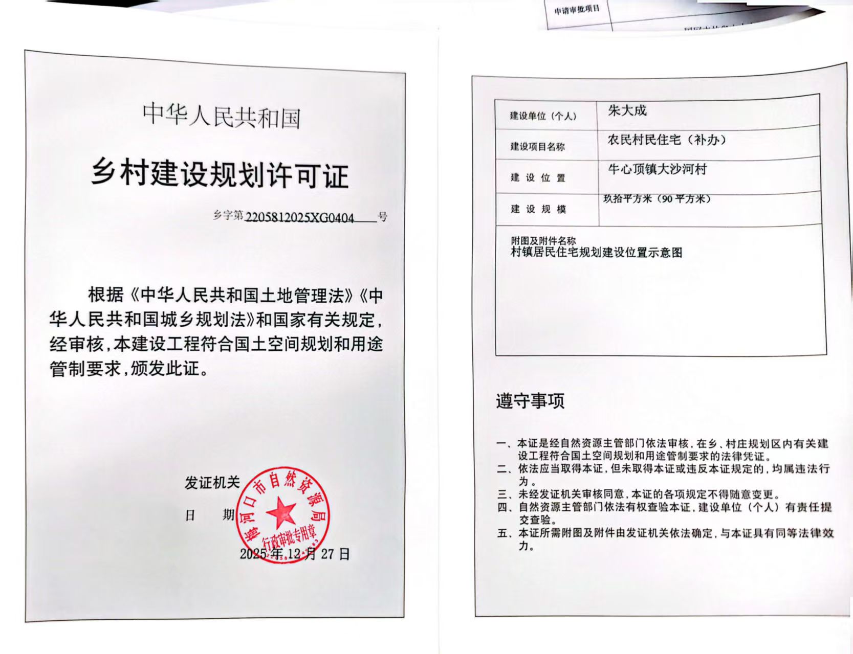 乡村建设规划许可证—朱大成