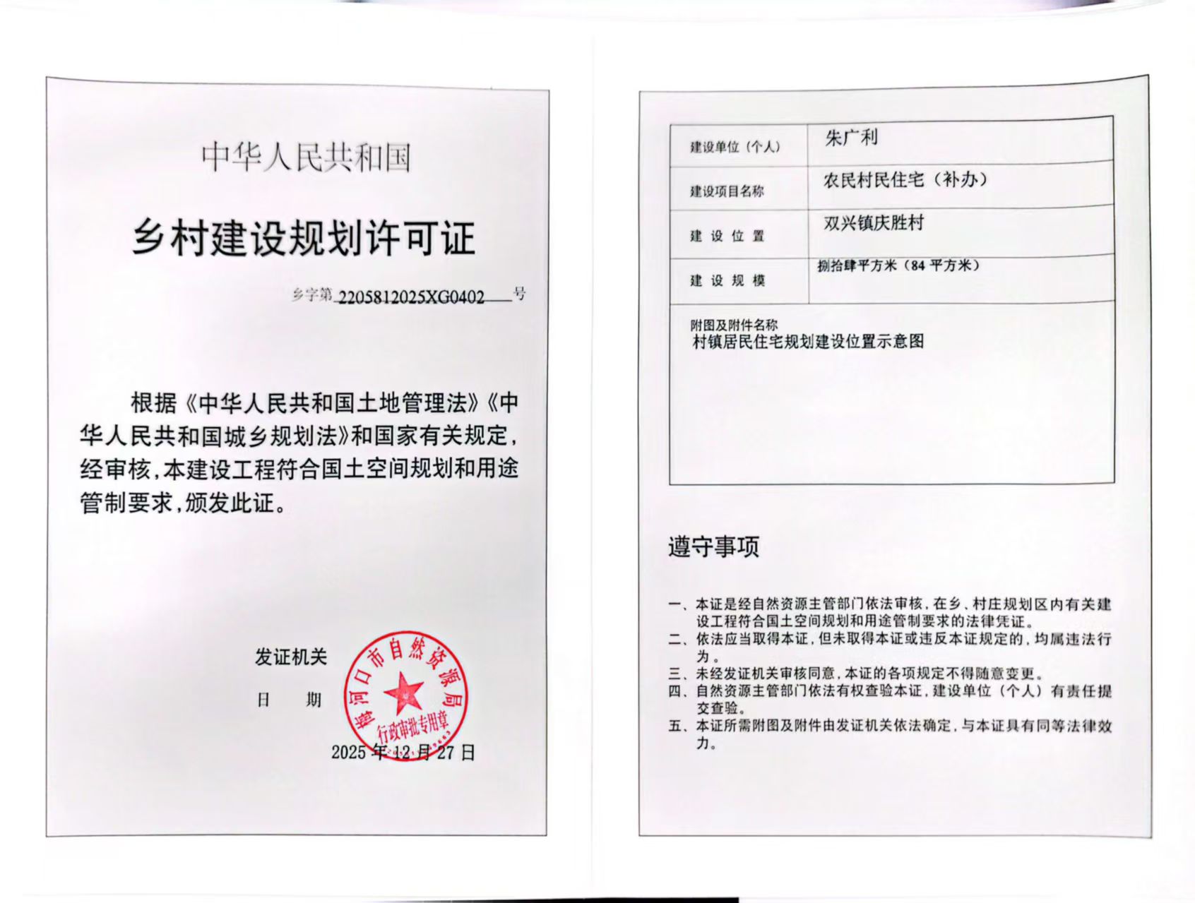 乡村建设规划许可证—朱广利