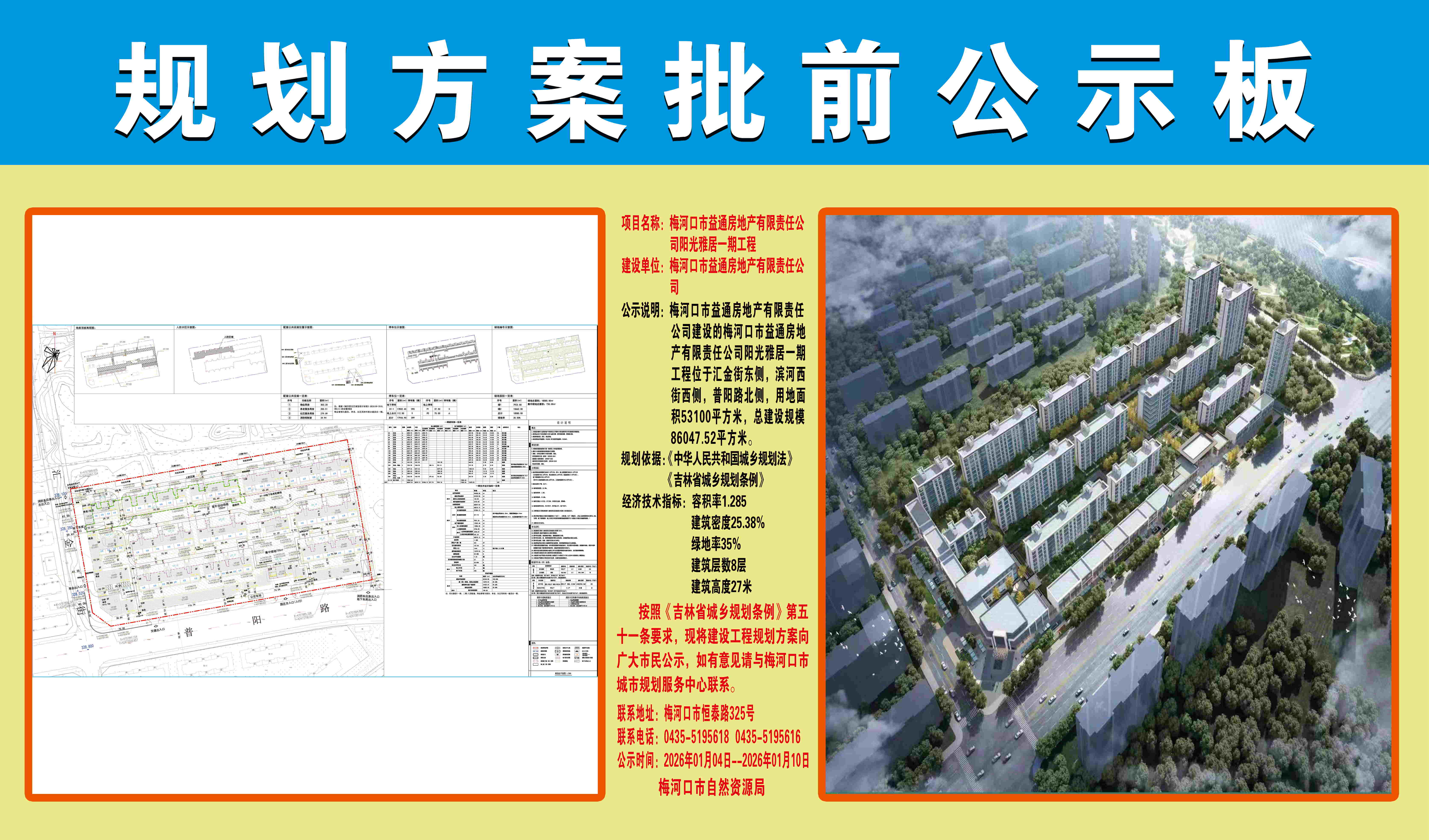 梅河口市益通房地产有限责任公司阳光雅居一期工程--规划方案批前公示板