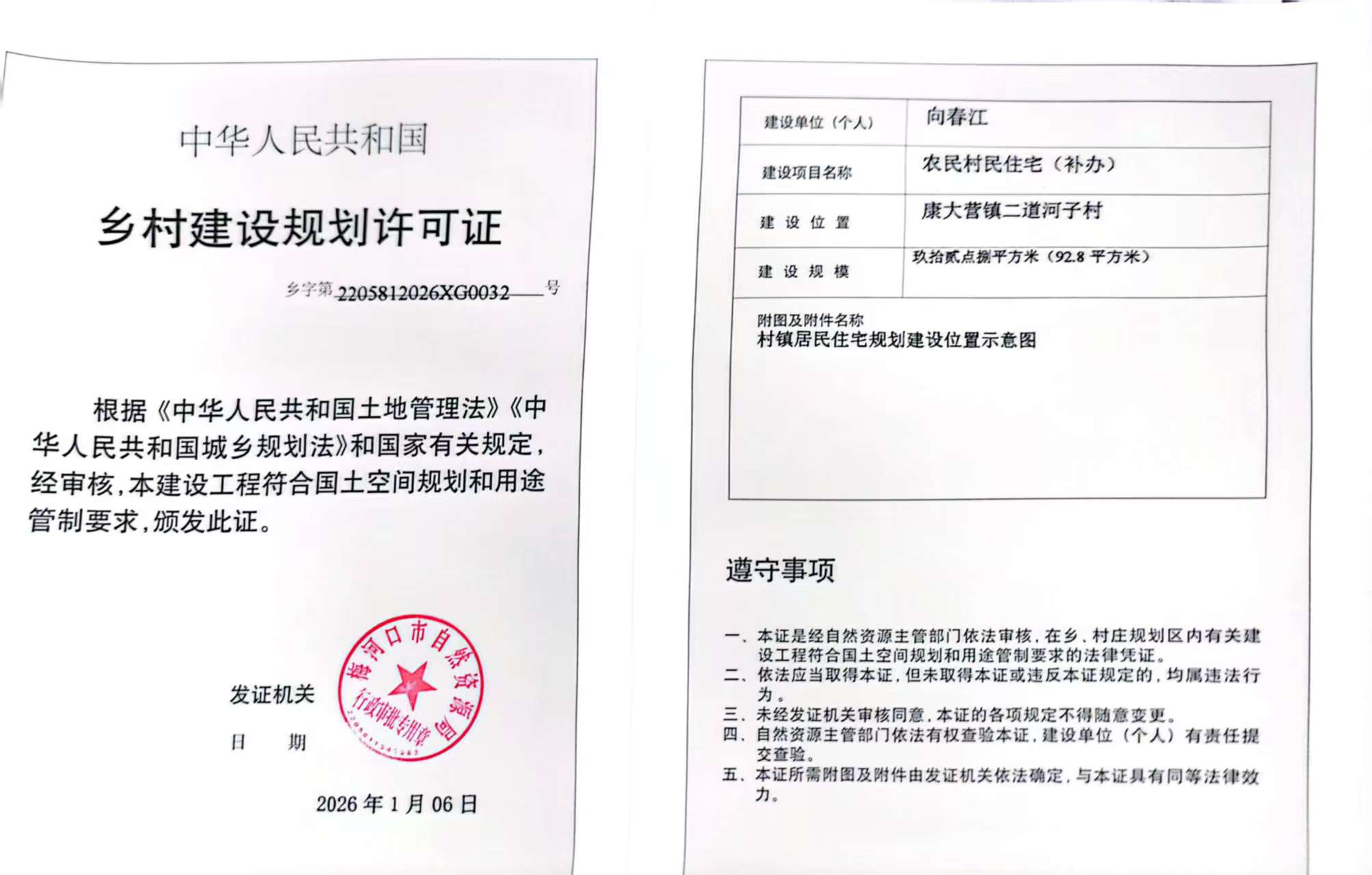 乡村建设规划许可证—向春江