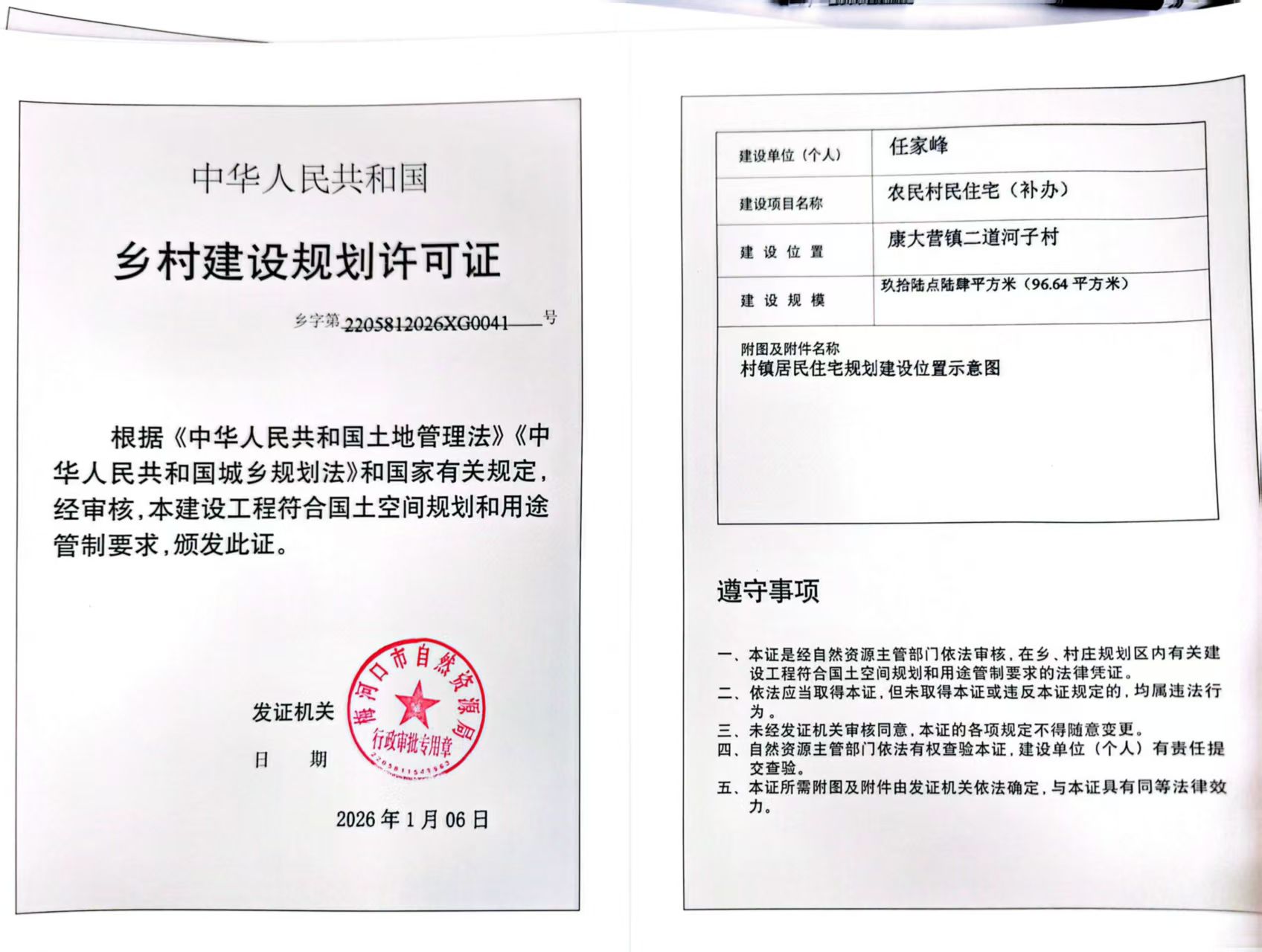 乡村建设规划许可证—任家峰